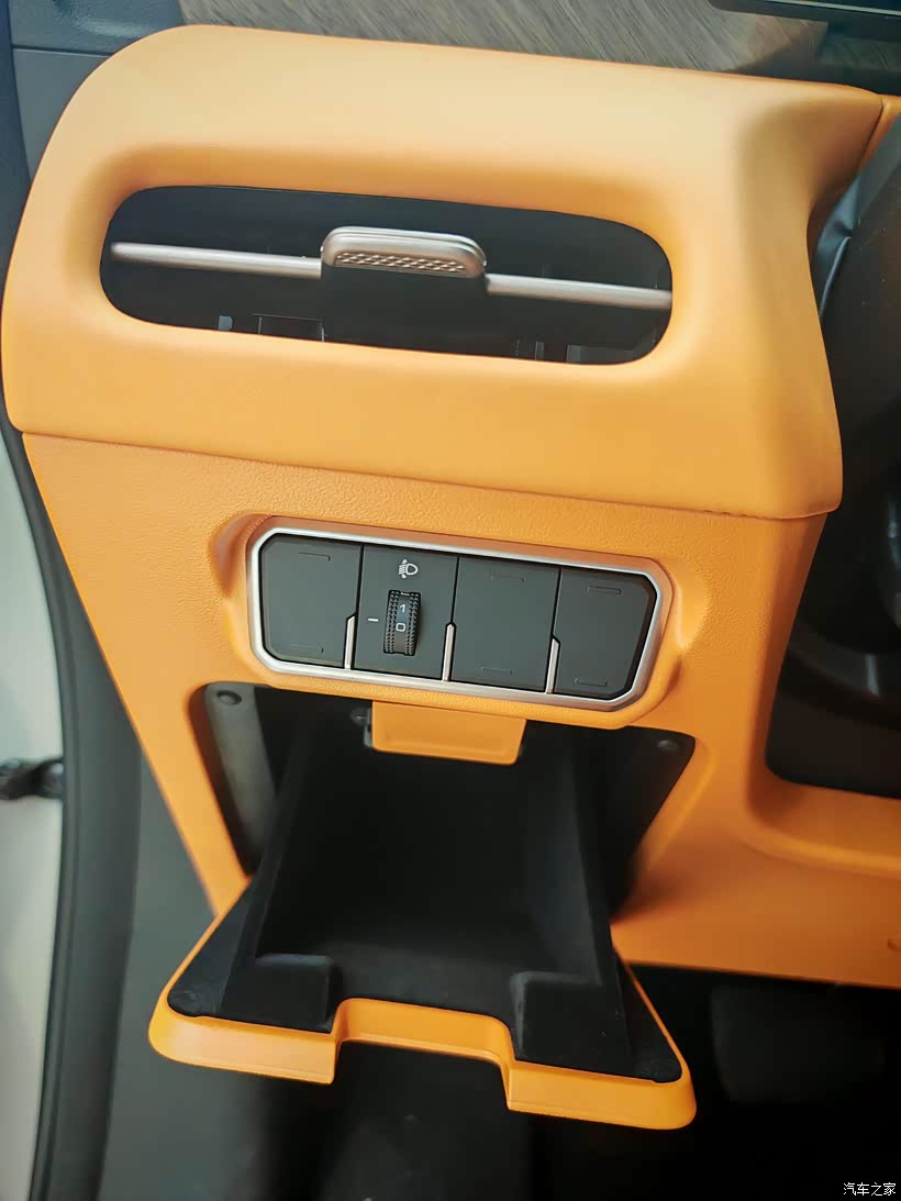 驾驶座方向盘下有一个小小的储物盒,可以方便司机放置证件。