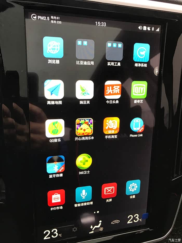 五、外观及内饰:作为外貌协会专职会员的我来说,车子造型必须有!宋MAX可以说是一改了比亚迪在人们心目中死板的形象,完全没有了那些杂乱的线条和多余的装饰,车身线条简单干净,整体风格流畅。大面积的横条进气格珊搭配上独特的篆书标志与矩阵式全LED大灯,给人一种年轻的感觉。侧身腰线将大灯与尾灯相连,也采用了悬浮式的车顶。前脸的龙脸设计 dragon face据说为比亚迪王朝家族式设计理念,奥迪的设计师果然不同凡响,汉字宋更是给了整车中国风的感觉。内饰采用了精约的规划风格,中控区域的12.8寸大尺度触摸屏,具有许多有用的功能,号称买车送IPAD,在这一点可以跟电动车之王的特斯拉拼一拼,回头率超高。语音控制给了我们人车交互的另一种体验,值得一提的是比亚迪的云服务真的十分给力,锁车解锁这种简单功能就不说了,预约空调和定位找人简直就是高科技的代表,良心之作。外号公路坦克的宋MAX安全系数很高,各种头帘侧帘搭配齐全,也算是除了驾驶员之外给乘客上了一层保险。顶配全LED大灯,离墙很近了能显现出龙脸造型,相当震撼,室内配置了氛围灯,让我一度怀疑我是不是真的买车才花10来万。滤净系统对于俺们这种PM2.5污染严重的地区来说真的是福利,看着车内十几,车外一百多的值,你就会觉得钱花的还真值。顶配360°的全景影像保证你指哪打哪,安全系数直线上升,老婆笑称以后倒车终于不再剐蹭了。