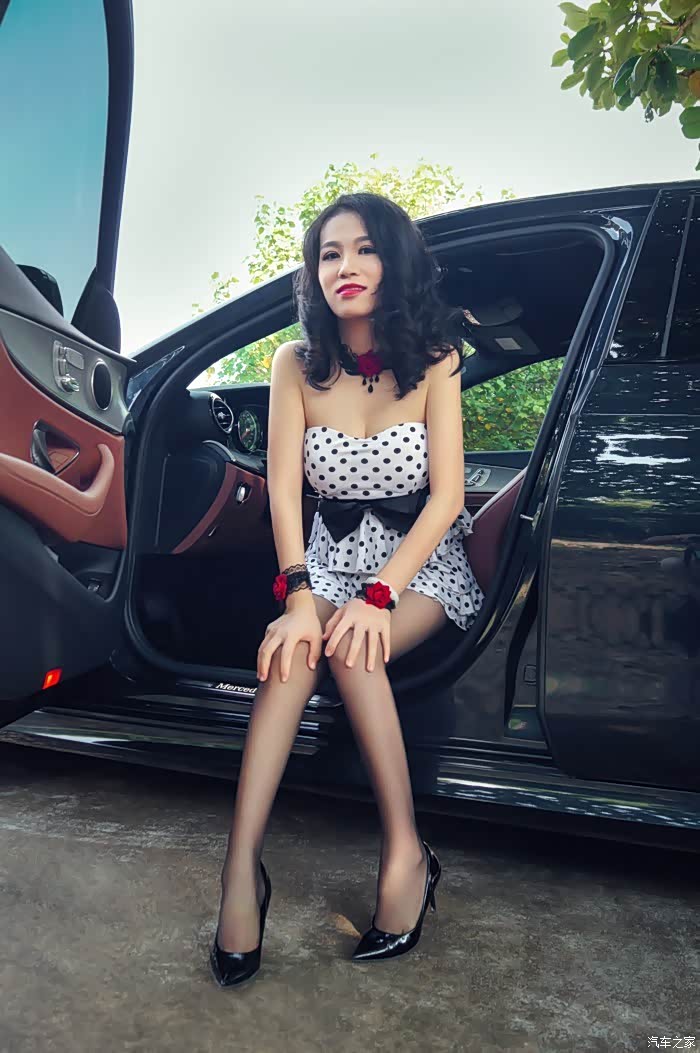 #车模现场 #奔驰E300 #黑丝 #Wolford #波点裙 #副驾视角