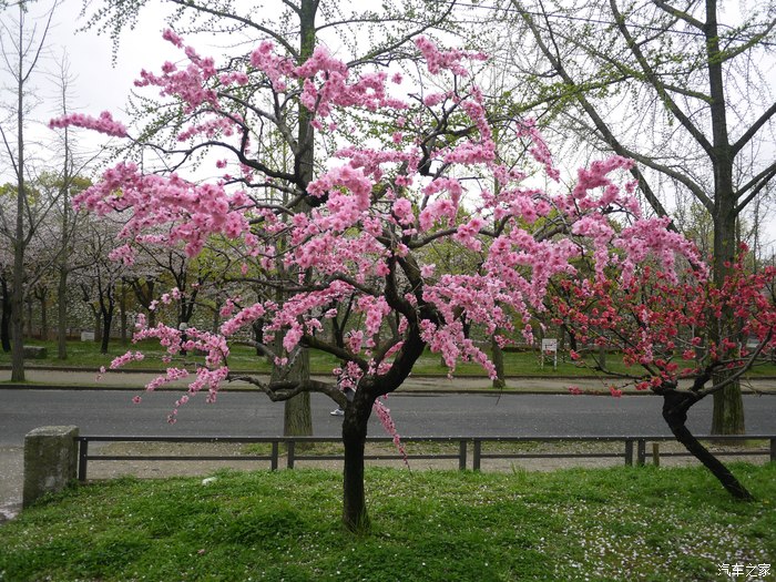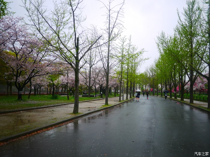 看到樱花树了,公园外面比较少,里面就是成片的了。