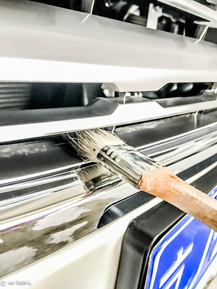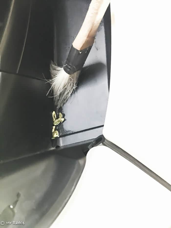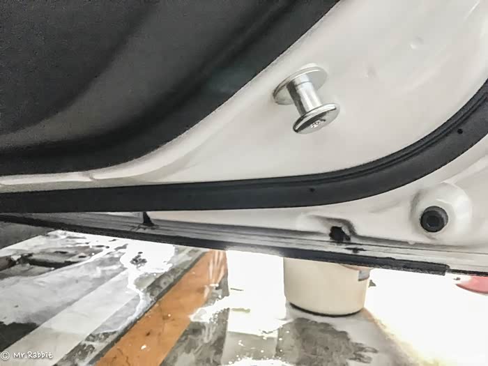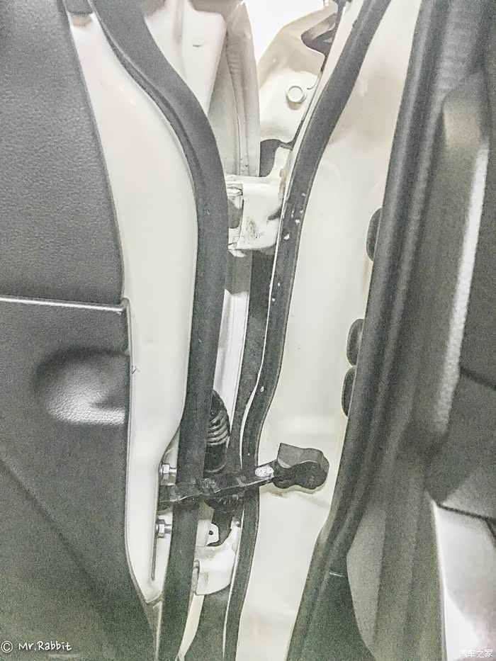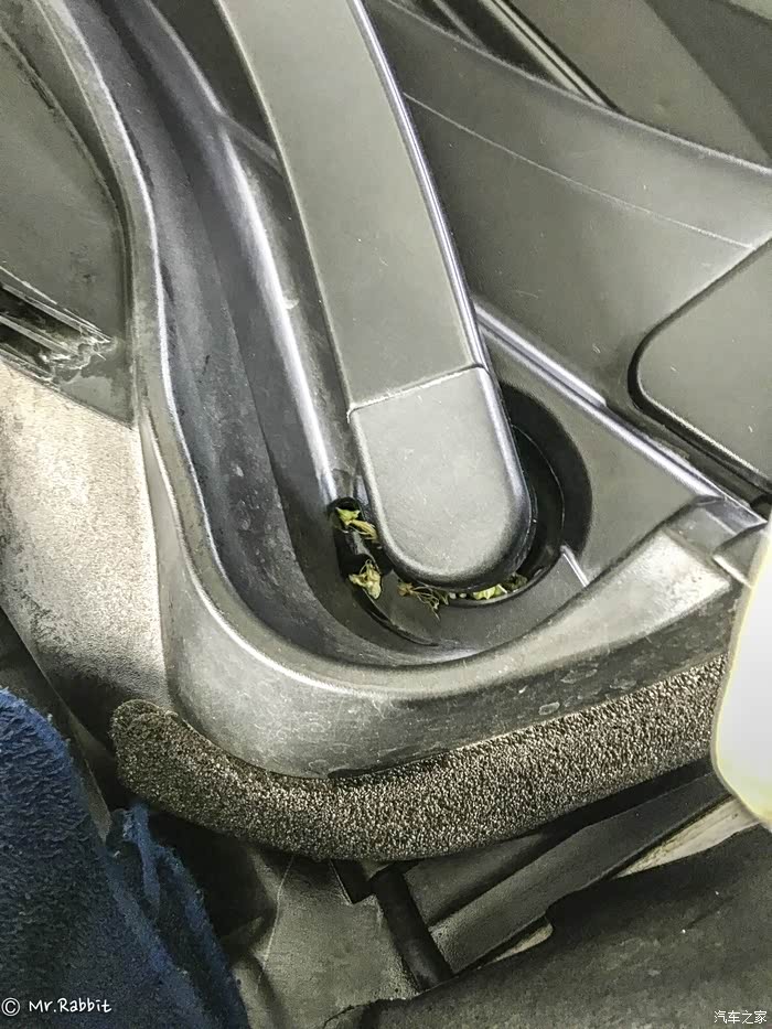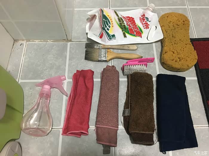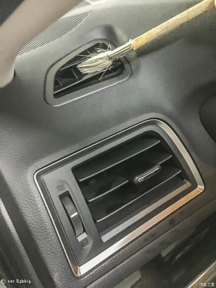 外观精洗,由于自己设备不多,没法做到冲底盘啊轮拱什么的,今天主攻外表内饰。车脏的情况下,车漆上是有很多大小不相等的沙尘颗粒,不注意的情况下,洗车可能会导致磨损清漆。两桶清水从车顶泼下,整车大概全部冲一遍,然后第三桶清水加洗车液边润滑边清洁,最后清水再冲一遍大概完工,这样可以最大限度保证车漆不受伤害。擦车布,用途要分明,擦漆的擦漆,擦玻璃的擦玻璃,擦塑料件的擦塑料件,混用的话很容易碰到沙子磨损车漆。细节部分,像车身的一些排水孔,等等细节部位,该用刷子用刷子,这个一会会有照片。