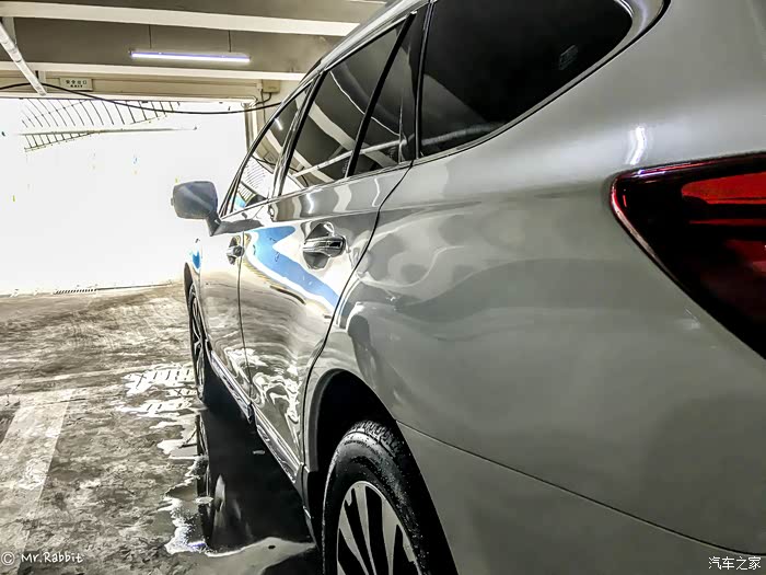 最后机舱和轮毂,由于5代傲虎刹车片特别容易掉灰,所以轮毂需要勤快点多清洁,不清洁的话时间长了就是一层硬硬的糊在轮毂上。机舱清洁,能别用水就别用水,按照斯巴鲁的惯例,新车都会喷很多过海保护蜡(发动机舱绿色的那玩意儿),不及时清洁,就会像胶水一样粘连各种尘土形成油泥,到时候清洁就完了。