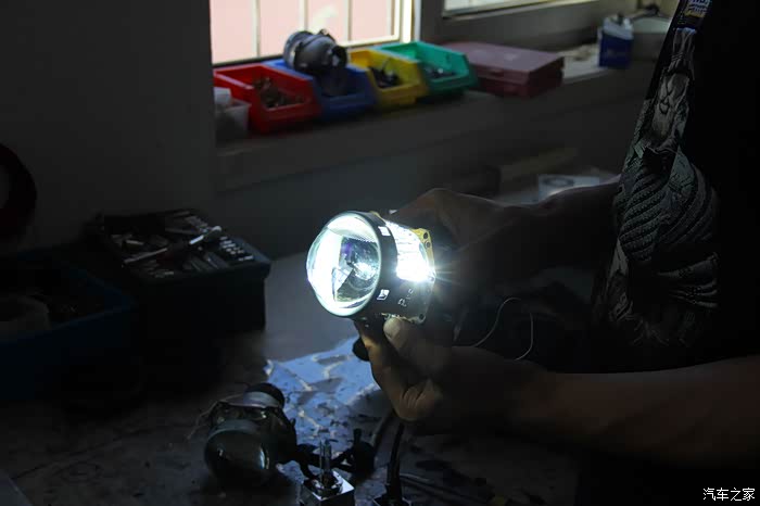 我的车是大众途观2013款的,原车配备了25W的氙气灯泡,比主流的35W的氙气灯泡功率上小了,在亮度上面肯定是不如35W的,这都是不需要讨论的问题,不管怎么说好歹是个氙气的,比卤素的强多了,有一次把车放在4S维修,没想到被人偷换了右边的灯泡,造成左右色温不一样,加上灯光散了,也不会调整,就动了改灯的念头,看了不少车友们的大作,最终选定了飞利浦/PHILIPS 黑暗战士大灯透镜套装 XV+4800K氙气灯+35W安定器+金钢PRO透镜,这套组合,安装后各方面都比较满意,个人感觉色温上面有些低了,这灯的好处就是有透镜支架,不需要把大灯拆解了,少了不少的麻烦。