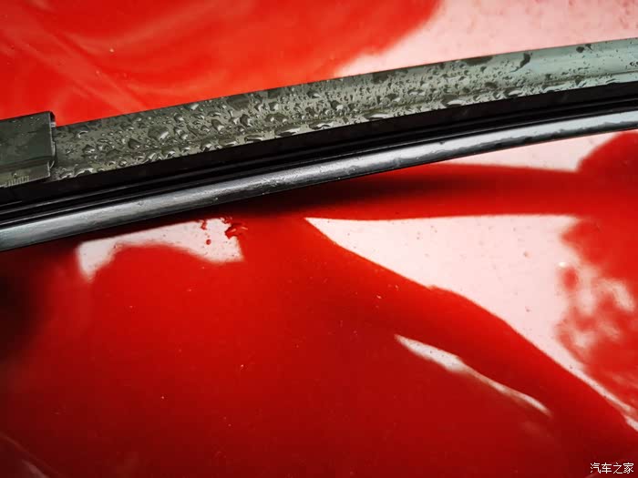 差不多有一年左右没有换过雨刮器了,雨期使用时雨刮器时会在玻璃上留下一条条的痕迹,雨水刮不干净。密集的印痕严重影响了前方的视野,雨大一些的时候行驶在路上那是真心不敢快一点点了,安全第一。