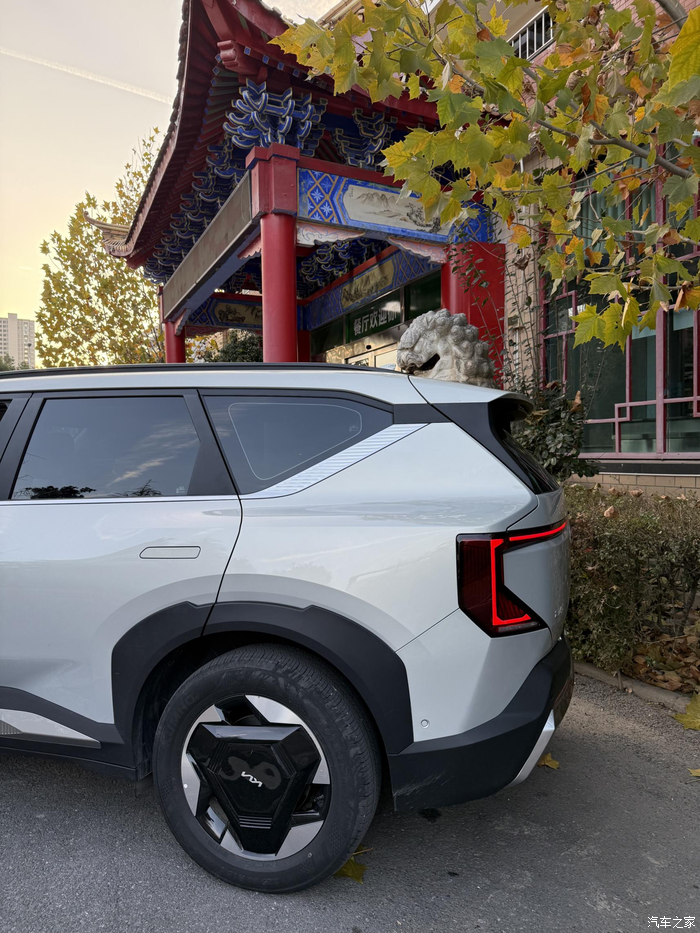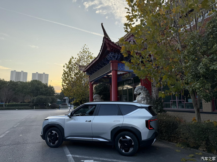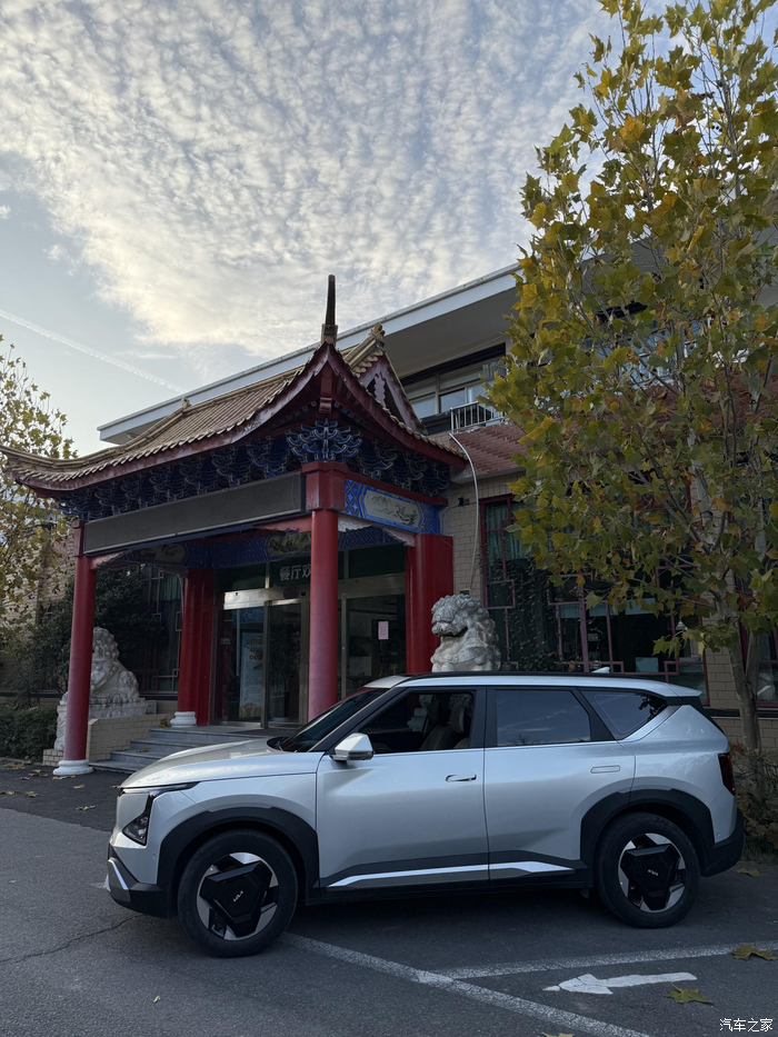 从油车换到电车,这心里其实斗争了大半年,以前开油车,最怕的就是早晚高峰的油耗和每个月加油时的肉疼。换车的念头动了很久,但这大冬天的,身边的朋友都劝我电车伺候不起,特别是在低温环境下,我这人就是有点轴,无意间在网上看到起亚EV5的介绍,又去店里试了几次,最后还是没忍住,下手了。这颜值是真长在我的审美上,方方正正的,看着有力量感。趁着上周末天气不错,特意把车开到公园里,在这个古色古香的房子边拍了几张,银灰色的车漆在阳光下质感真的绝了,配上那个几何形状的轮毂,既复古又科幻。
