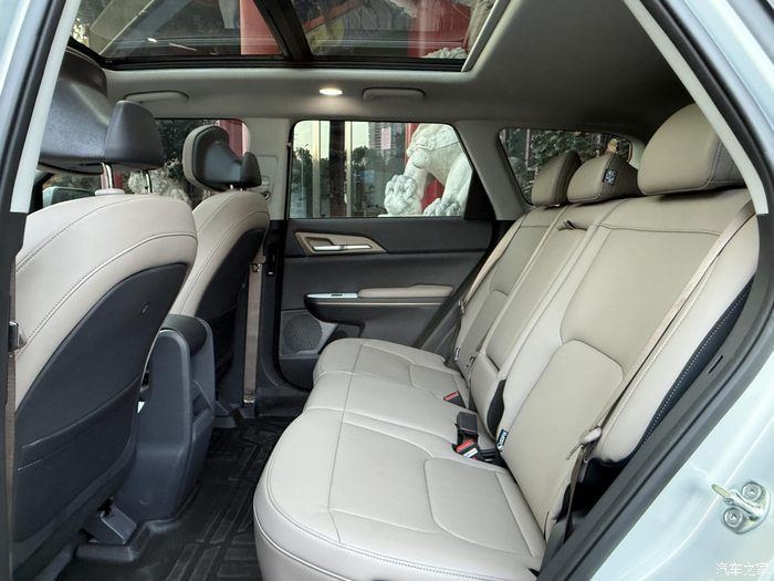 内饰我选的这个浅色的,看着特别温馨,像家里的客厅一样。中控台的设计很巧妙,中间是通的,老婆坐在副驾,如果把包包放过来或者递个东西都很方便。