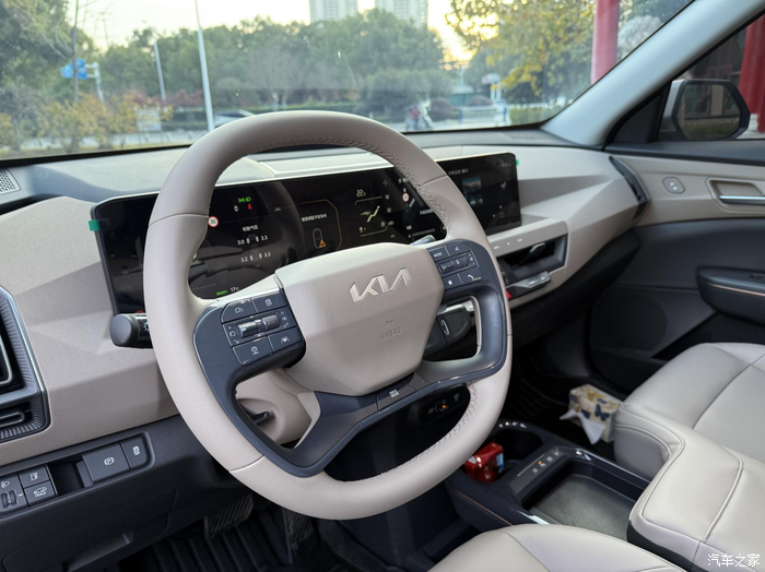 提车那段时间正好赶上降温,出门前我对续航还是有点担心的。但开了一段时间后发现,起亚的三电技术是有点东西,市区续航能做到85折左右,我也没刻意省着开,暖风该开就开,座椅加热也是上车必开。它的表显续航很扎实,不玩虚的,说是多少,基本就能跑多少,这种“实诚”在冬天真的太给人安全感了。