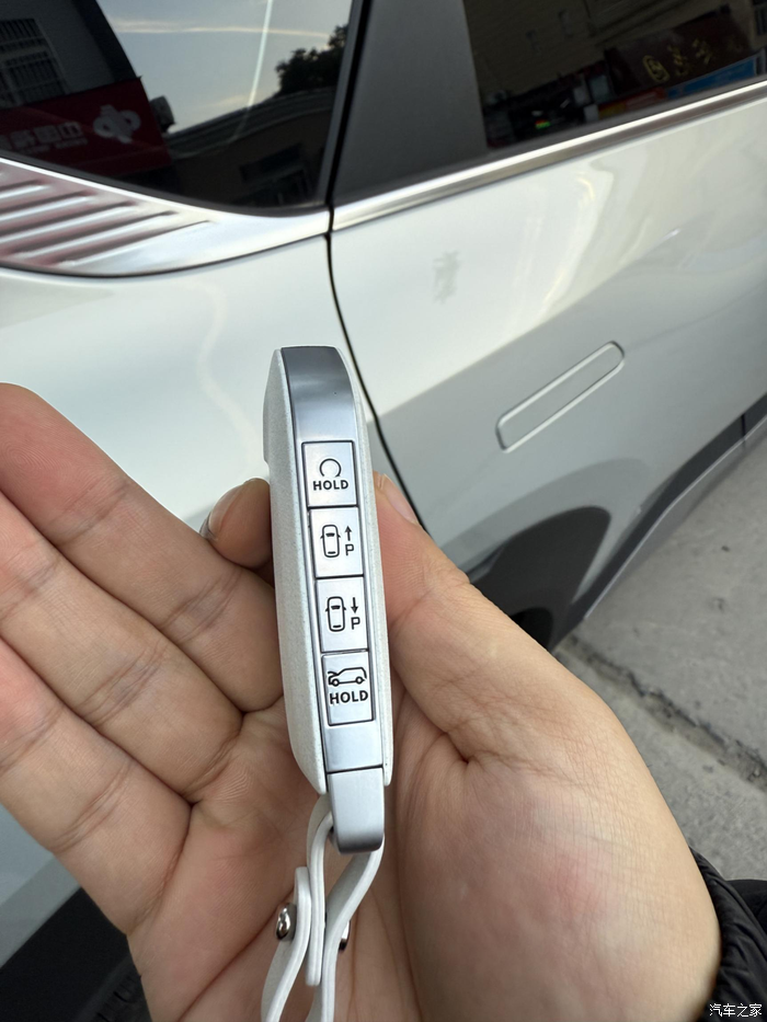 在其他细节方面,这车也给了我不少小惊喜。比如:这个车钥匙,拿在手里很有分量,按键设计在车钥匙侧面,很有设计感,颜值也高。
