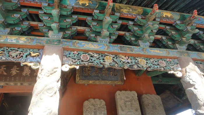 午门在清光绪三十三年被焚毁,民国九年重建,是庙内年代最晚的建筑,东西墙上所绘是道教中的方位神,左为青龙,右白虎。