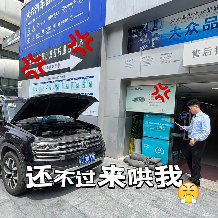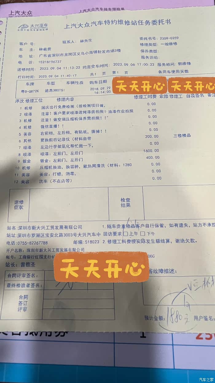 我们在途昂专属维修服务区开好单,可以要搞二三天,车就放4S店搞了,等下只能地铁回家了。