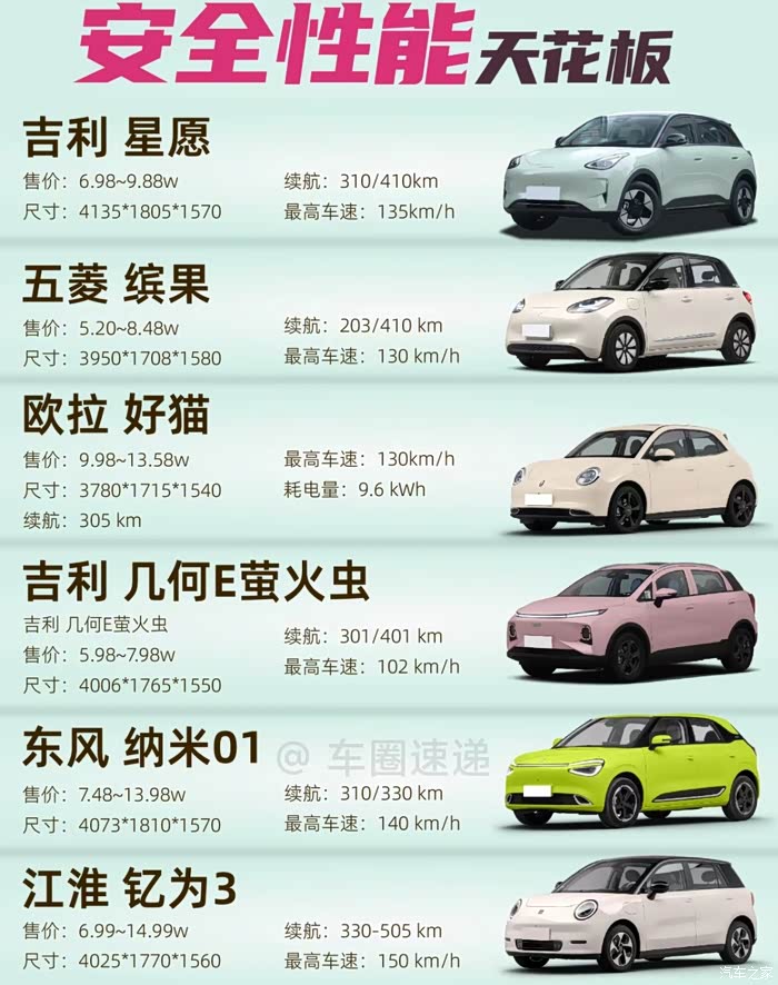 - 几何E萤火虫:部分车型配备驻车雷达、倒车影像、一键点火、远程启动等功能,在安全配置方面也有一定的保障,但整体安全配置水平可能相对星愿稍低。