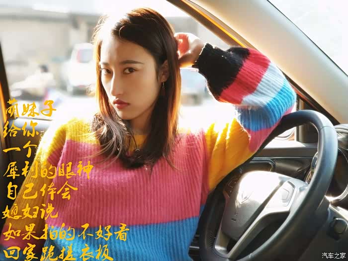 彩虹色的毛衣,精彩的生活,媳妇当车模第一季正式开始,话不多说,上图。