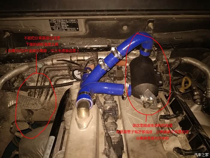 自从发现曲轴箱废气中所含的胶质体,会通过损坏的皮碗进入真空管路,损坏真空管路的器件。就开始想办法,如何才能将这废气中的胶质体与可燃气分离开来,只将可燃气输往进气道参与重新燃烧,而将机油和胶质体等“留”下来,不输往进气道。