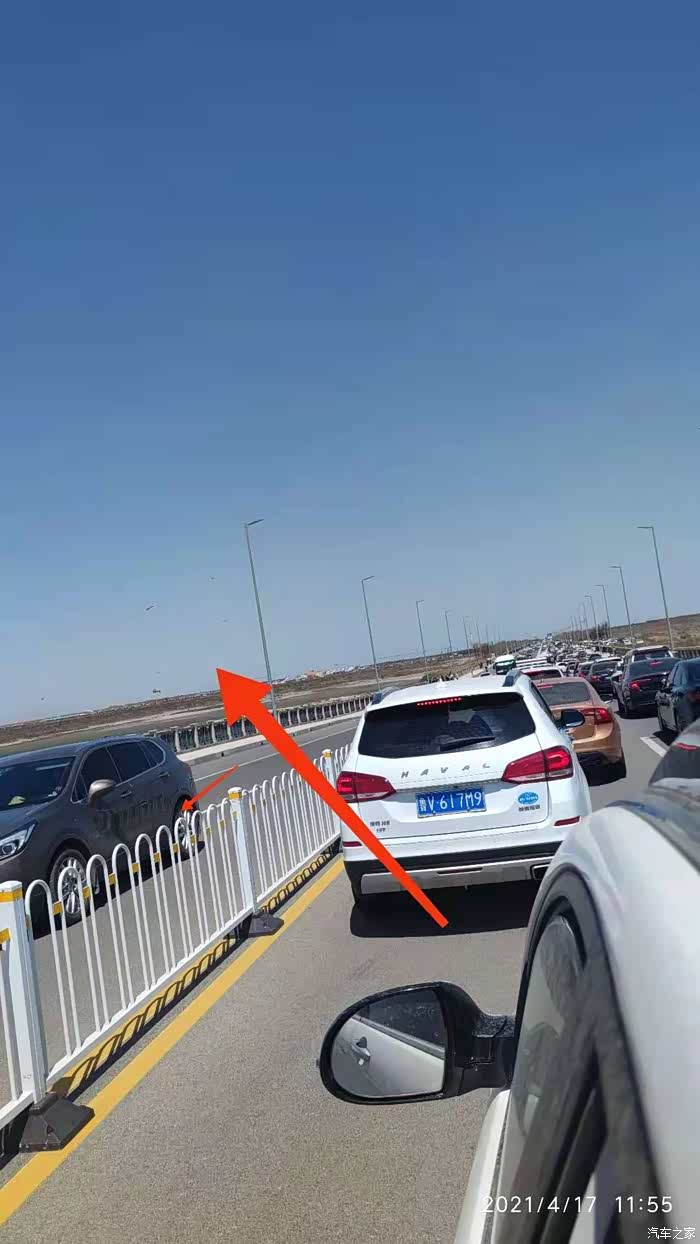 挨个查验停车证,根据停车证的AB级对车辆进行分流进出,因当天车流量太大,无证!绕道渤海之眼,警察叔叔沟通决定只通过纸质版的停车证,就因为这样一个小小的决定,上百辆车堵在了十字路口进退两难。我们的车也因此被分流至渤海之眼停车场,然后乘坐摆渡车前往。