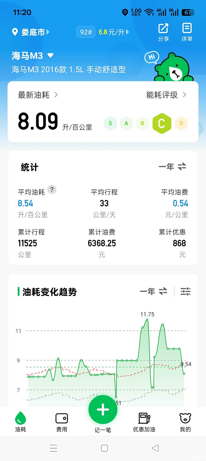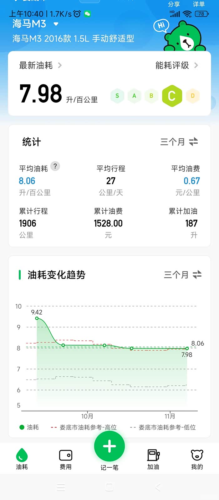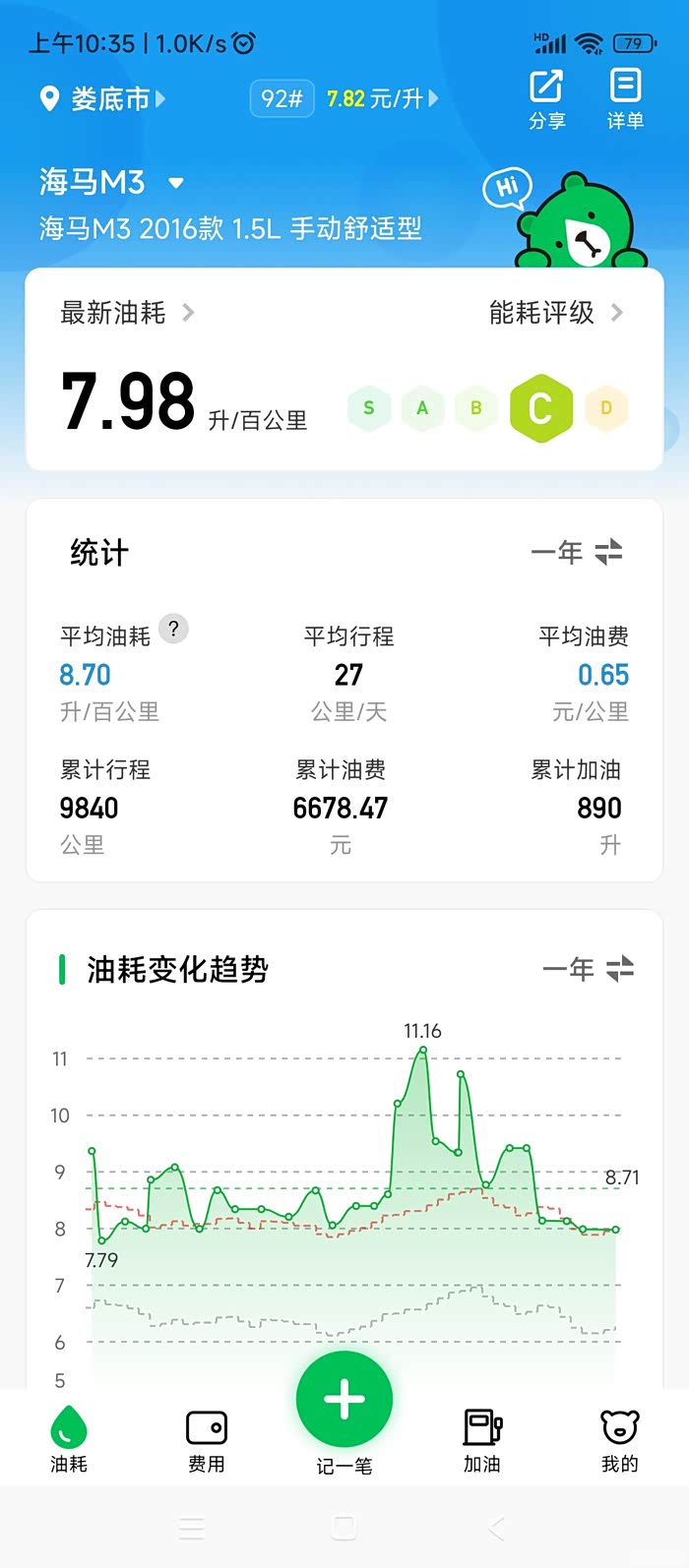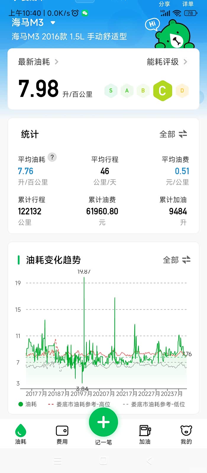 我的是2016款海马m3,每次加油都记录了,是最最真实的油耗。2016年3月份上牌,开了126000公里了,开起来还是很好开的。