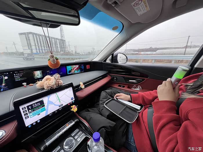 一共开了3个多小时,中间休息了一次,虽说一路上都是这种濛濛细雨,但航海家有四驱,开着确实让我蛮放心的,100多的时速变道或者是过高速的闸口,车身姿态都很稳,轮胎抓得住地,避震拉得住车身。虽然车身尺寸大,但高速开着一点没有船的感觉。