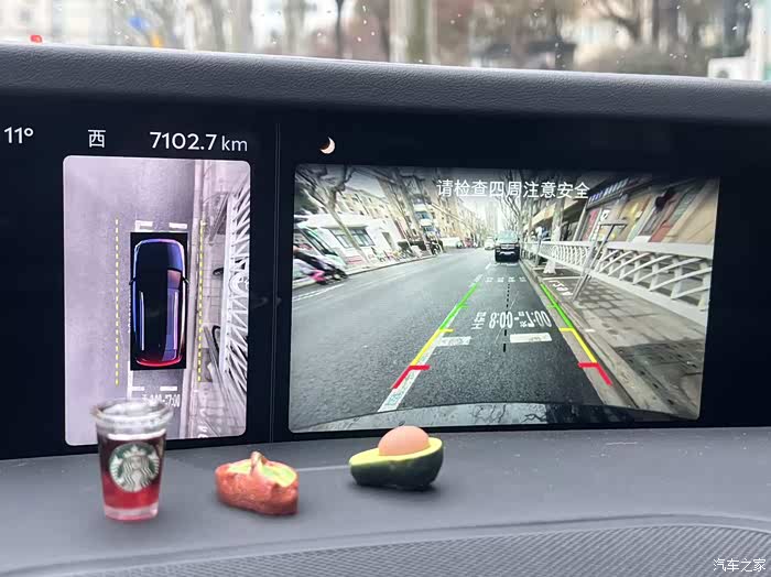 先到校门口接个孩子,去年年底开始航海家全系标配了540全景影像,我也是那个时候买的,这个功能用着确实方便,尤其是接送娃,偶尔要在路边停一下的时候,周围的情况看的很清楚,不用担心蹭到马路牙子。