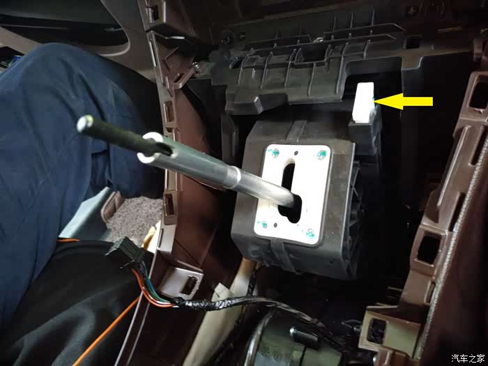 。不过刚才那个技术员告诉我,在档位旁边其实有个小盖子,真的按不下按钮的时候,打开盖子,用一个细长的棍子或者螺丝刀往下压,就可以解除锁止从而换挡了(待会我在图中会有具体图片说明),不存在真的把我扔路上的情况。只能先这样回去等待。但去了一趟4S店之后,这个故障居然好几天都又没有出现过了,让我哭笑不得。