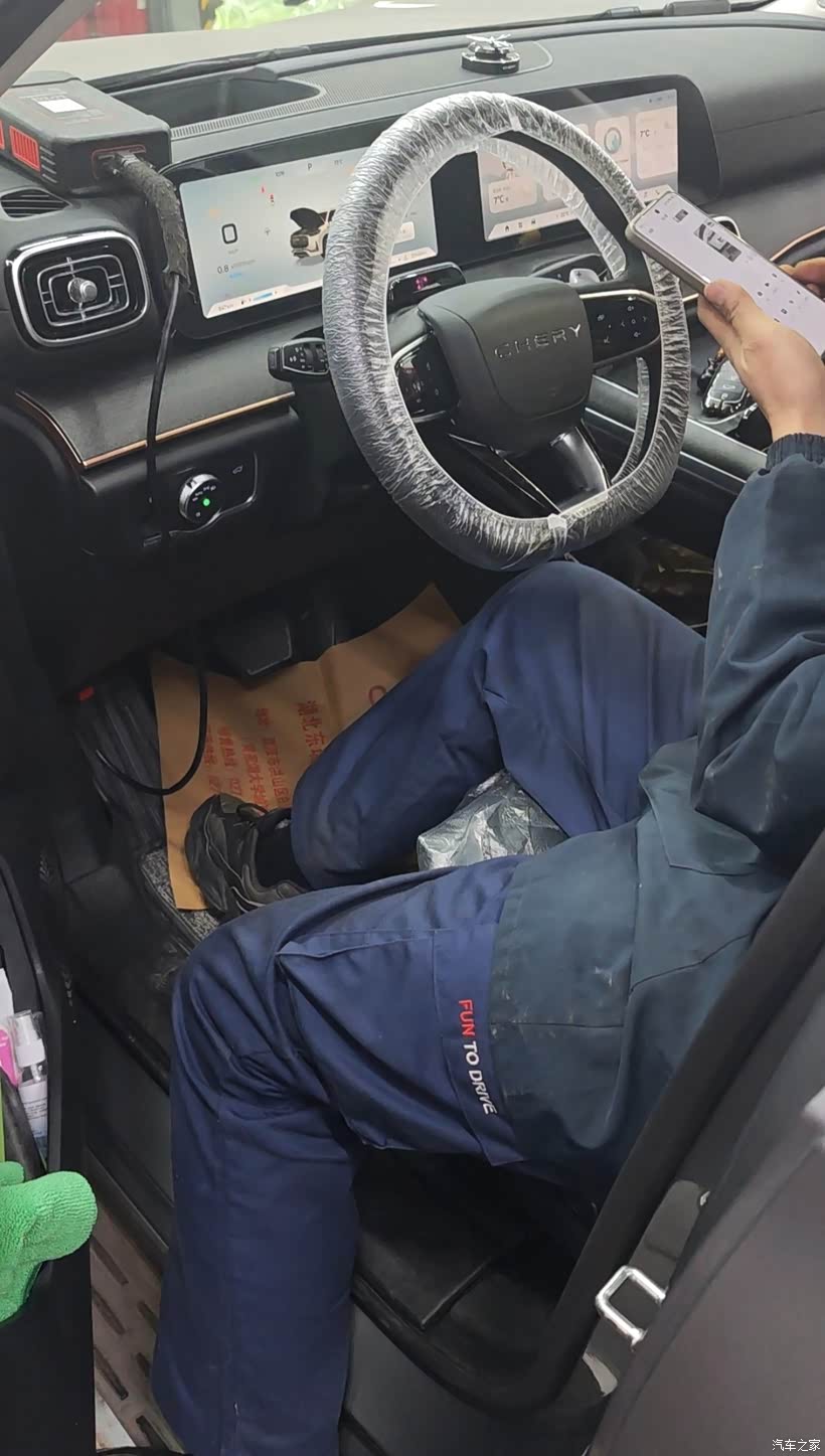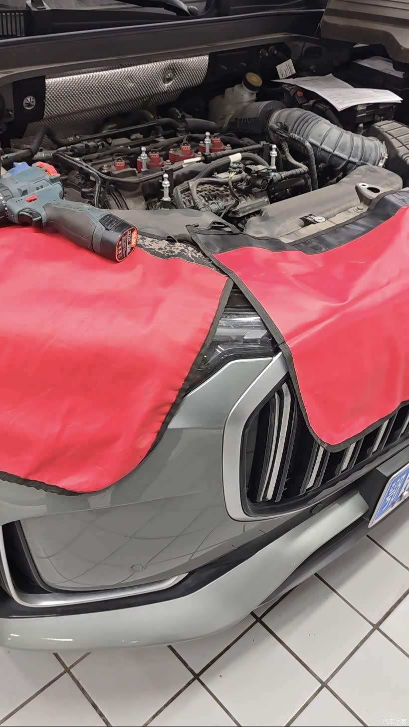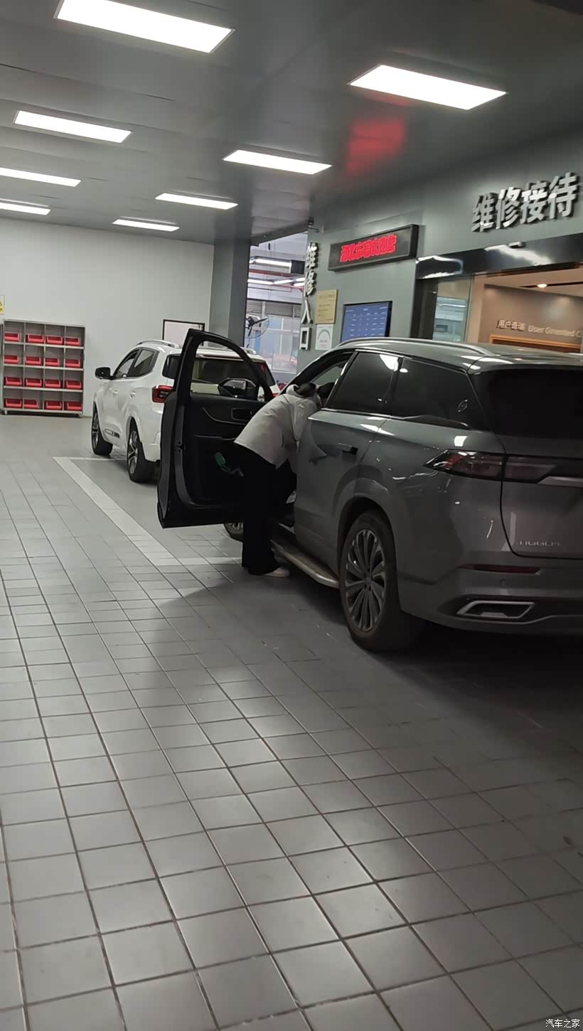 前台客服先跟我核对预约信息,维修人员对车辆外观、内饰进行防护,初步检查轮胎磨损、底盘渗漏情况。