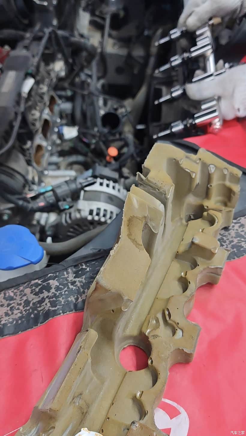 拆下来的隔音罩都被染黄了,上面有不少油渍。