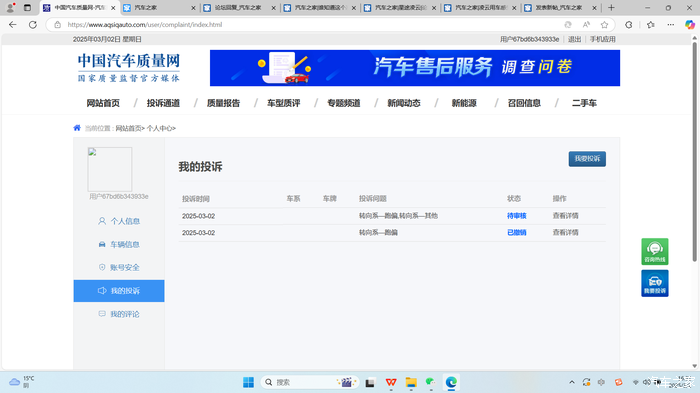 已在在车质网进行投诉(今天只提交了一个问题,其它不知为啥显示提交中,后续会陆续提交上其它问题),现在对这个车完全没有驾驶欲望,我想用第四声发音,什么“破”烂玩意,再用第一声“呸”一下。