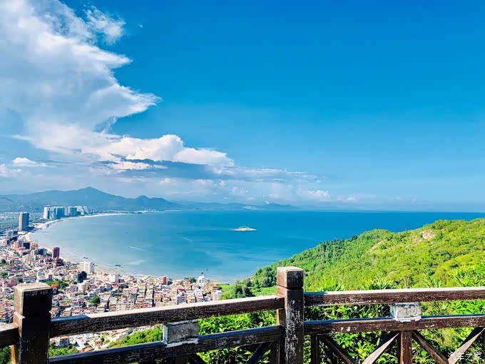 双月湾就是去海龟湾这座山上看的 开车到山顶就可以 自驾的话不要听那些开摩托车的说没有停车的地方 (他们会让你停海龟湾的坝子里)其实山上有两块平地 停车够够的 一般来了看看就会走(因为实在是没有一点遮拦 太晒了!晒的肉痛!)但是风景实在是很好! 两边都是弯弯的海中间是人们造的房子 风景赞到我都词穷!