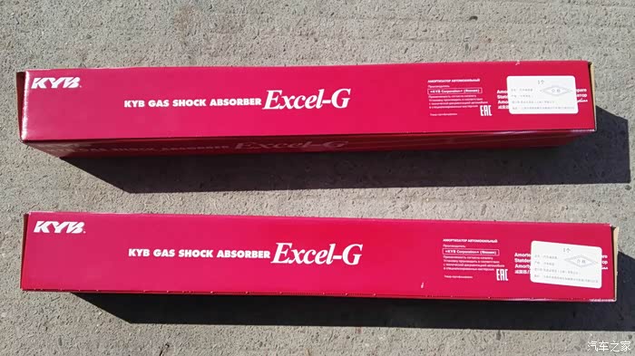 两个先对比下,包装胶带我还没拆开,所以看起来KYB的要短一些,但剪开胶带后和原厂是一样长,KYB的拿在手上,明显感觉比原厂的要重很多,
