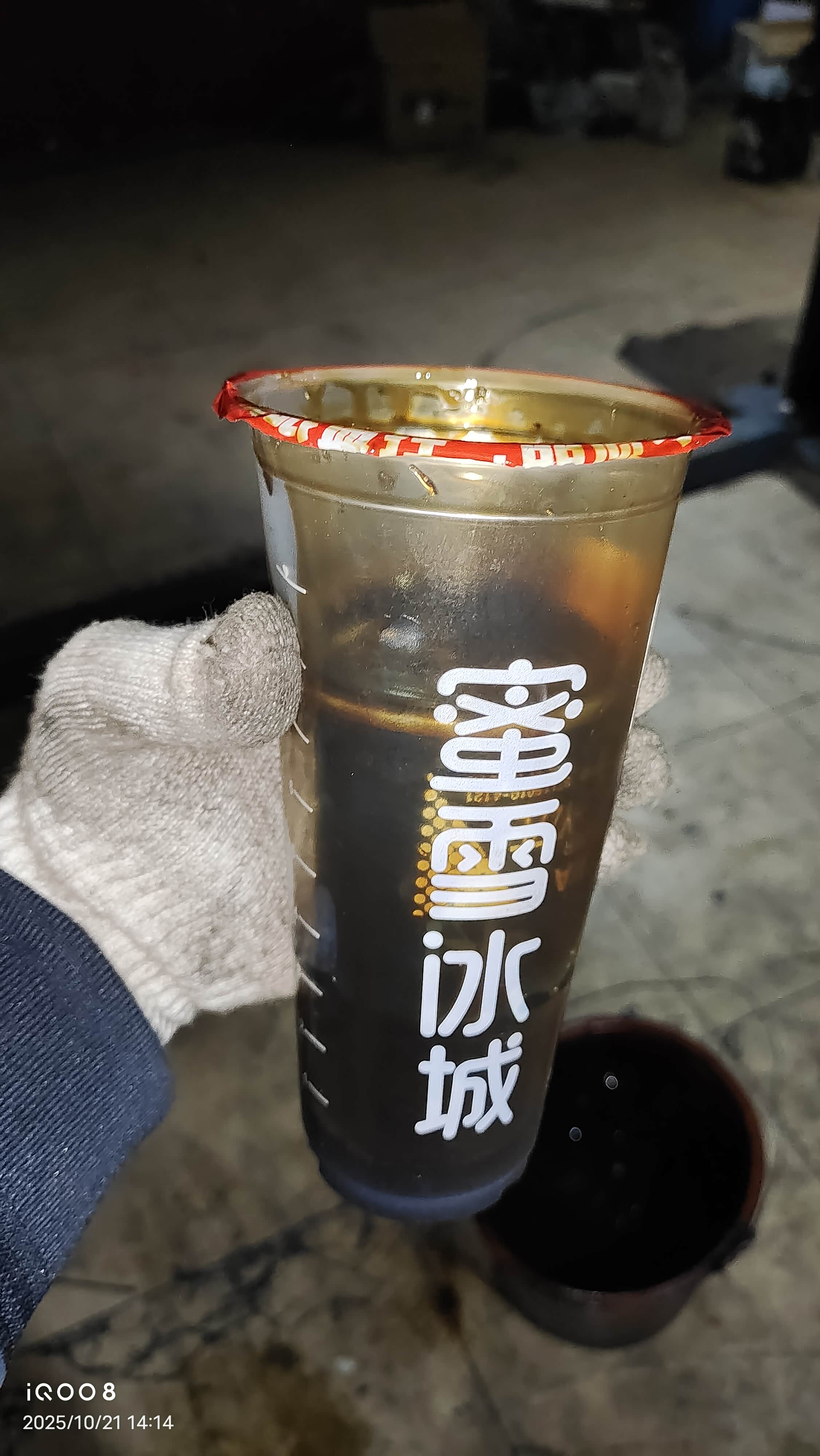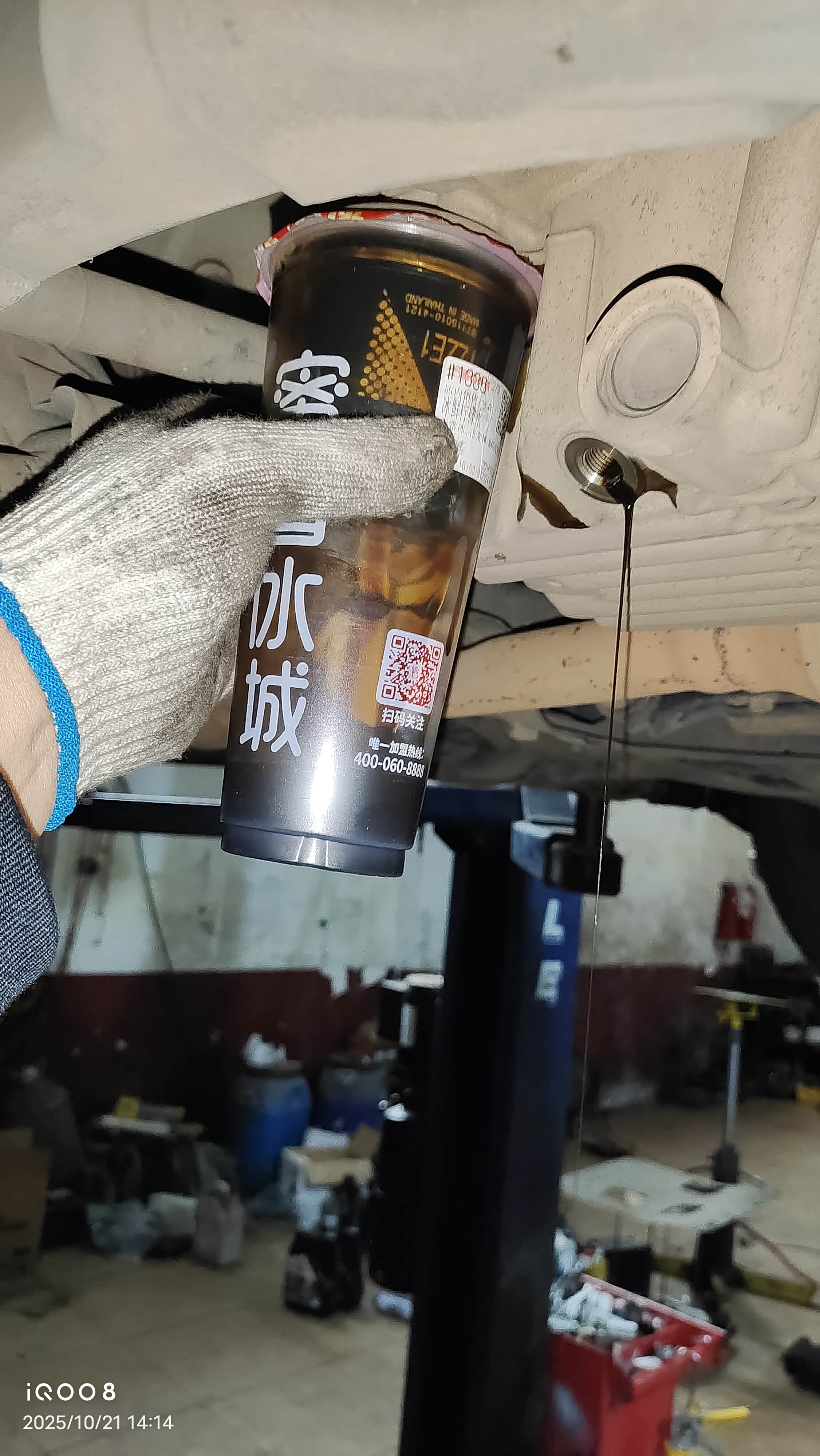 先拧松机滤,再套上蜜雪冰城,这样子就不会流到手上,操作起来很干净