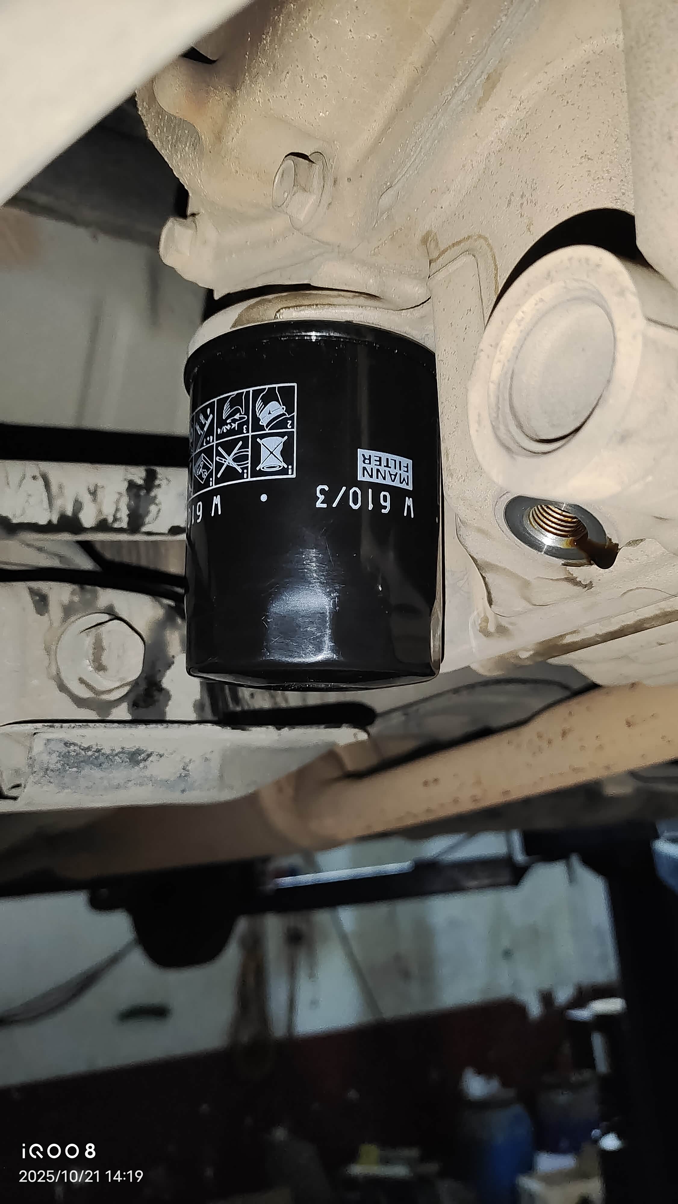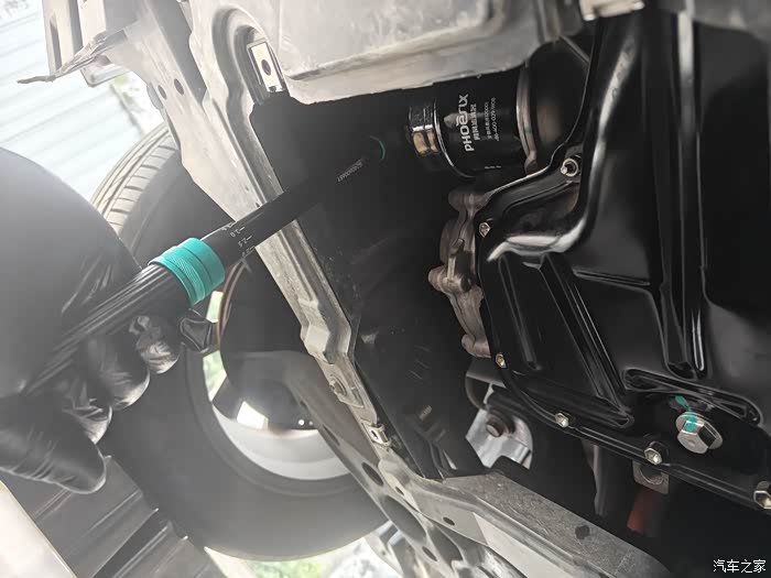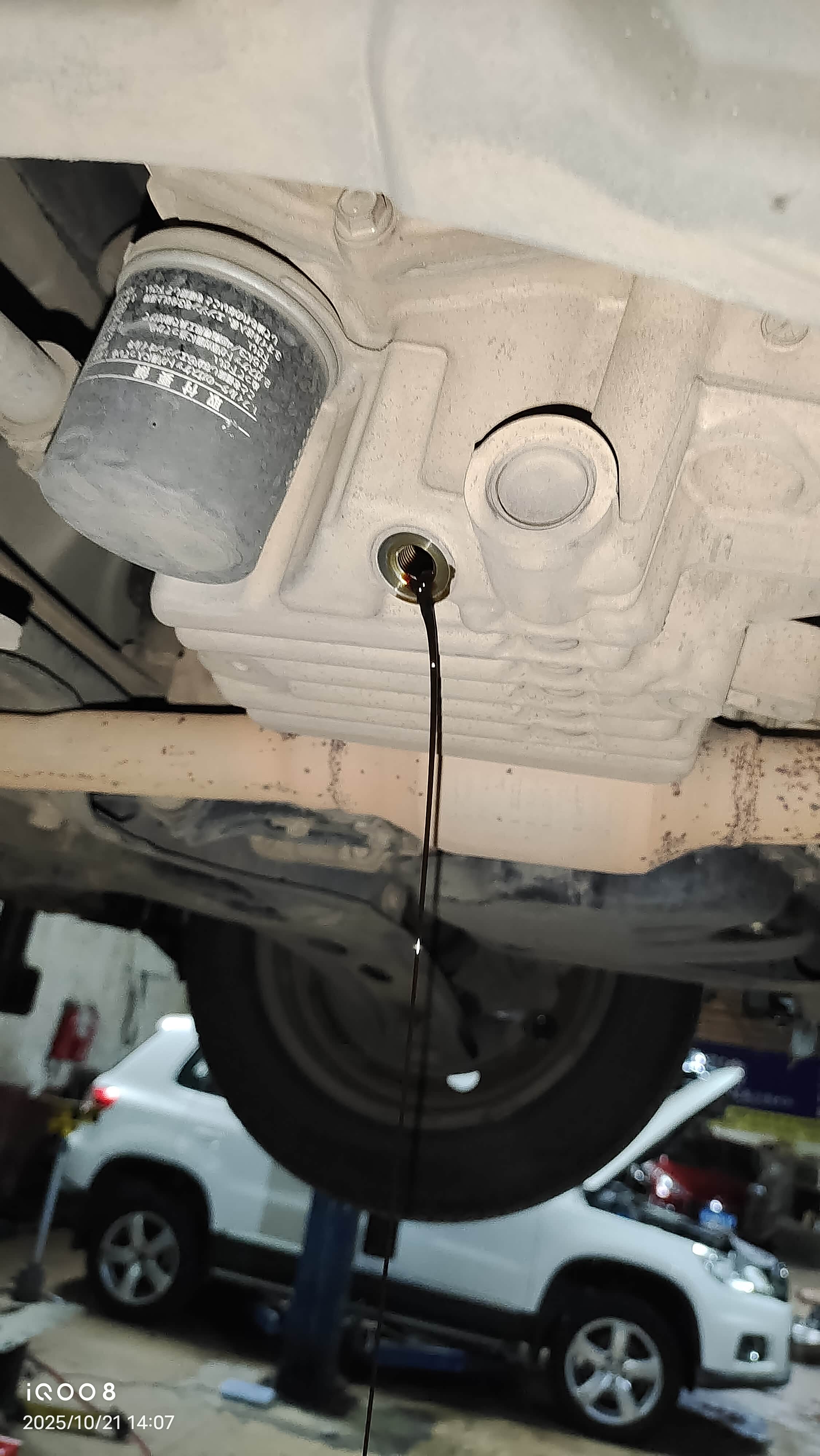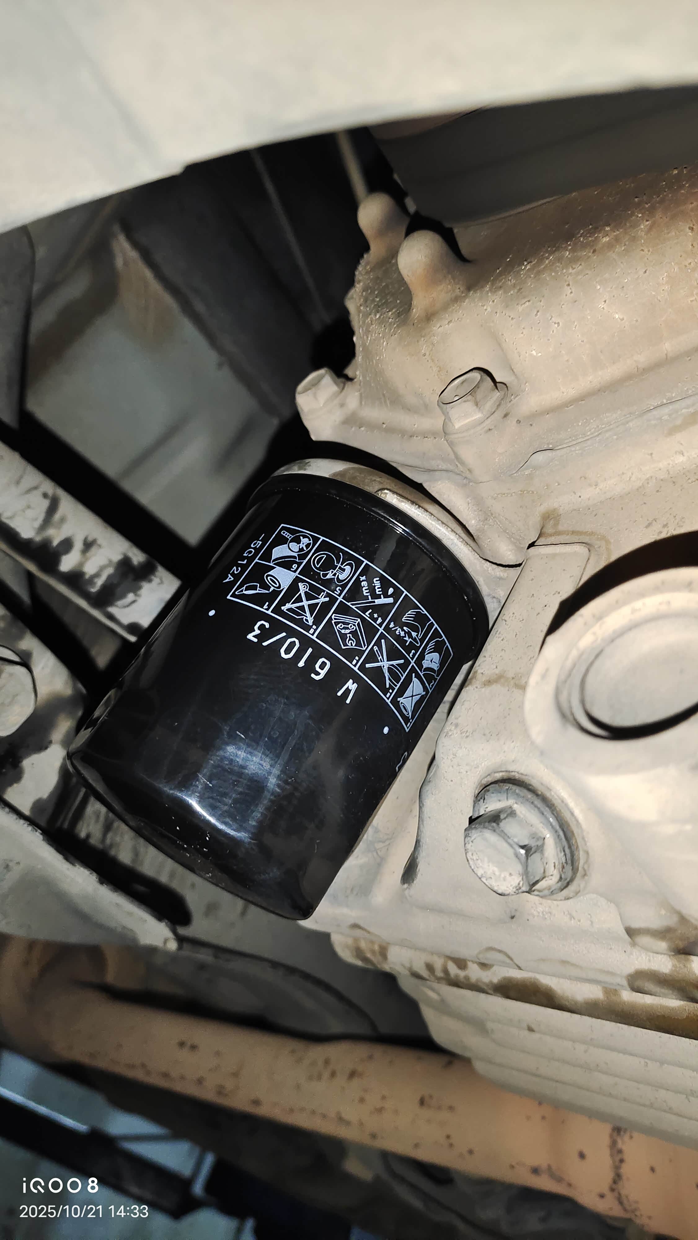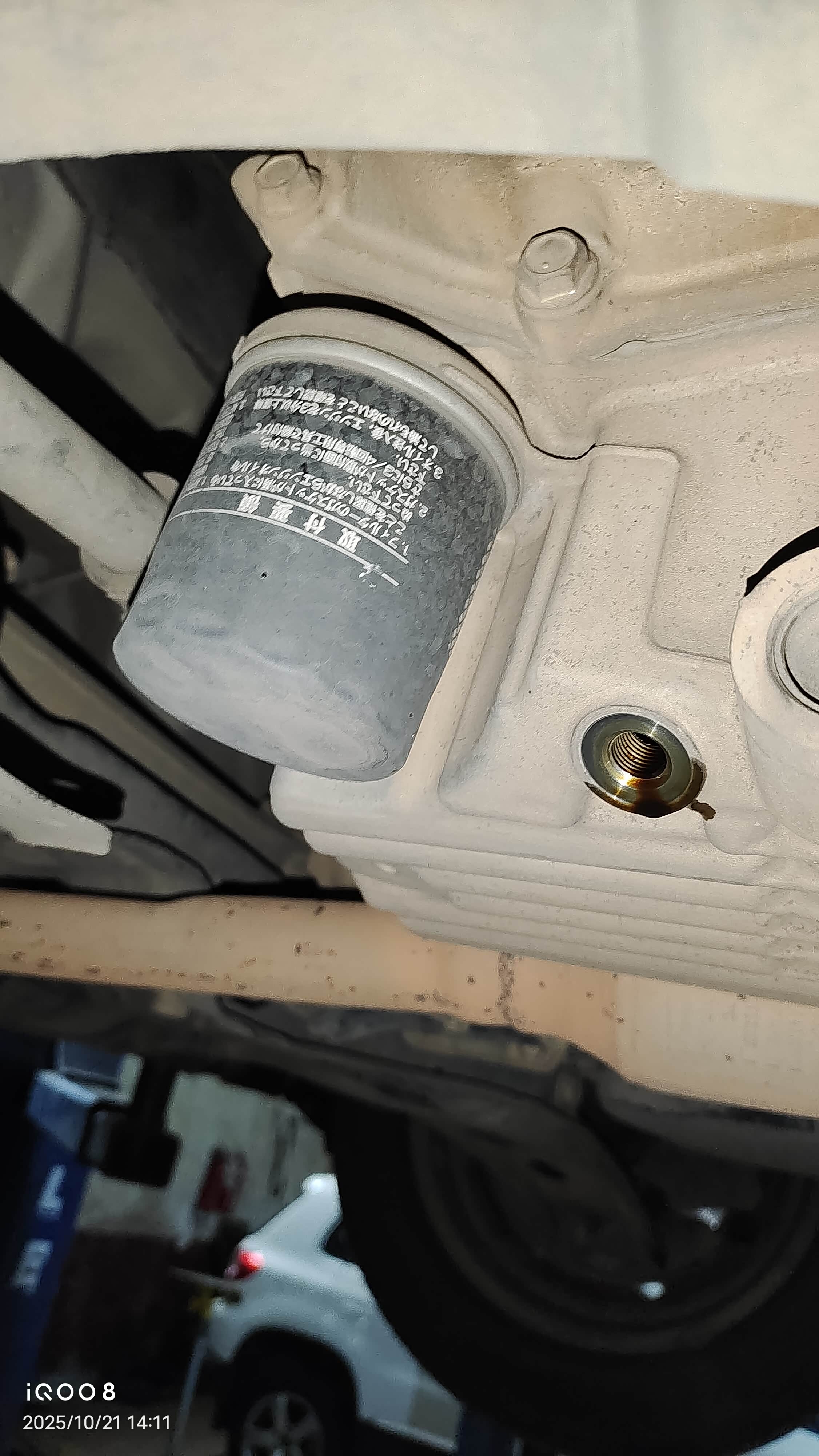启动发动机,怠速声音小,检查机油滤芯,油底壳螺丝一点不漏油