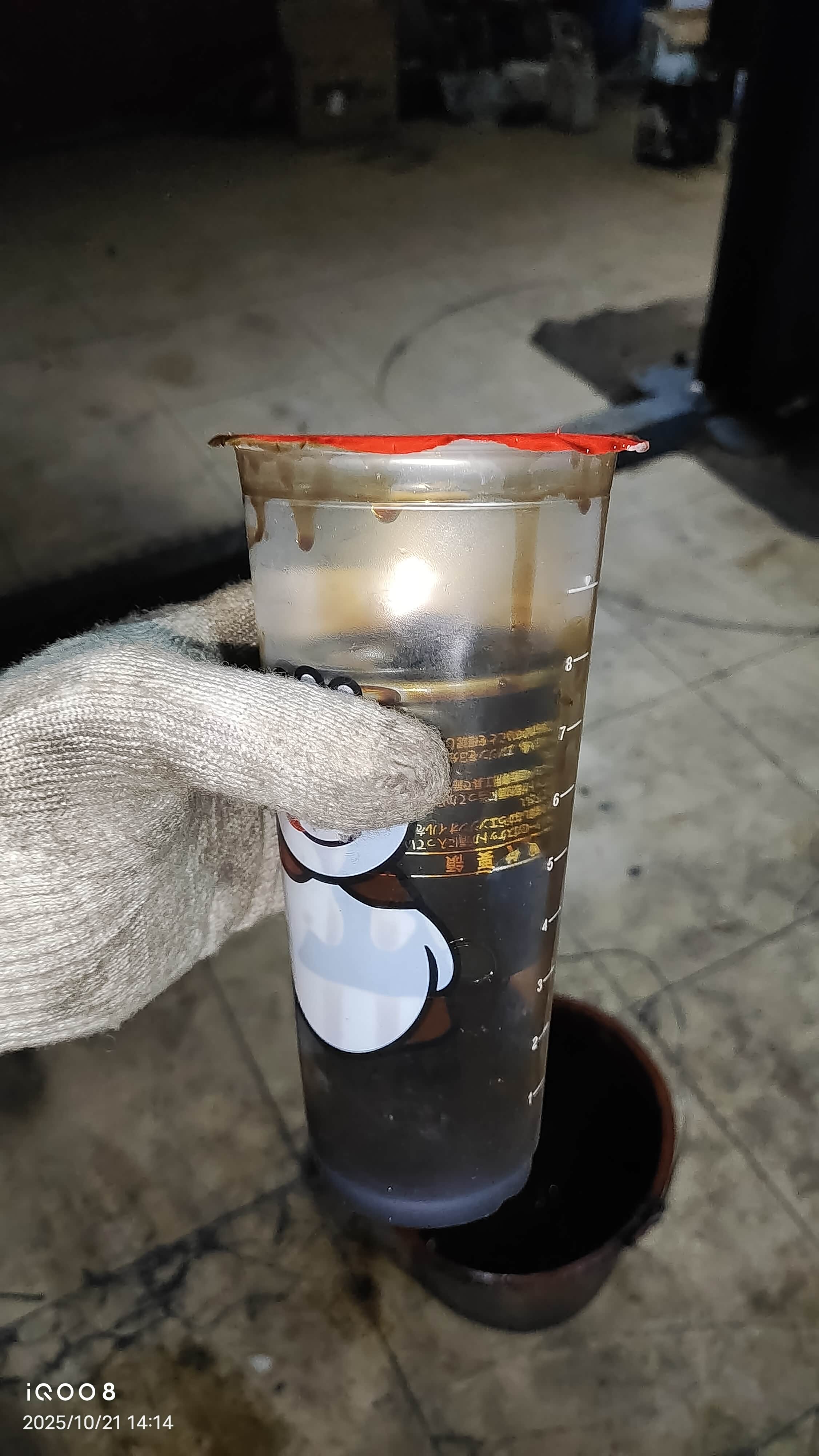 停机5分钟后,检查机油高度,上下孔间四分之三高度,完美。
