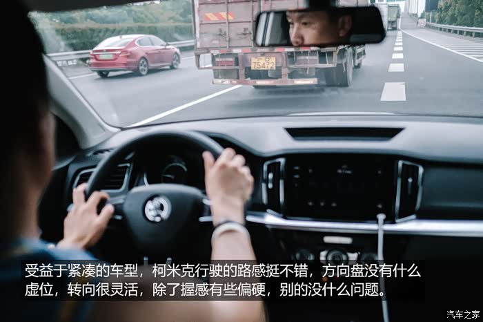 梦梦说这车坐着感觉挺柔顺的,没有特别晃荡的感觉。我告诉她这是一辆1.5L自然吸气的车,并不是主打动力,论动力的话,还有一款柯米克GT比这辆车更值得期待。