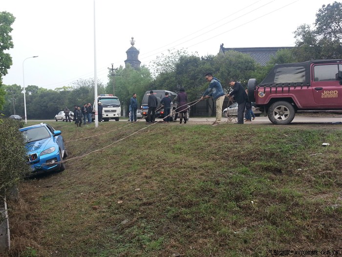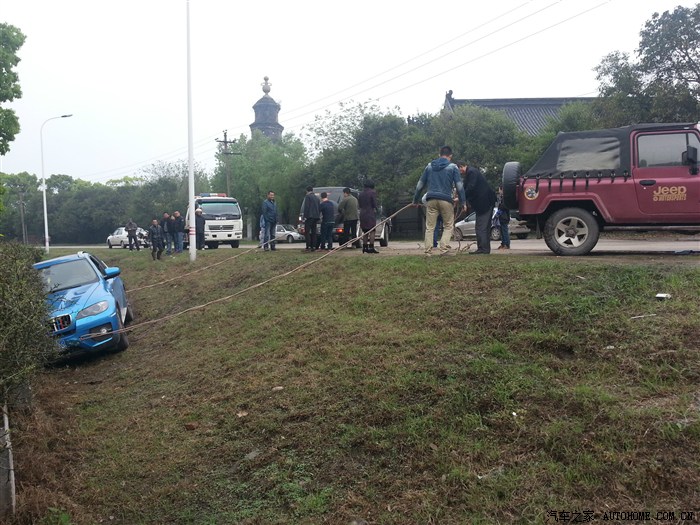 群主还是最给力的。他联系的越野E族朋友,E族们的经验丰富,看了情况后觉得应由两头拉动车子才能上来。。