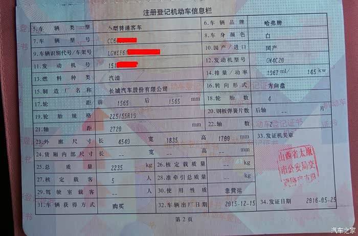 本人80后,人生第一辆车,之前一直用公司的车,现在孩子上小学了,接送有点距离,山西的冬天也比较冷,买车是被逼到那份上了,必须得有一辆自己的车用于家用了,也计划着带小孩和老人自驾游。先说说选车过程,去年7月份就列入购车计划了,想着老婆手生,也是新拿到的驾照,买了车也是用于家用,所以没想买太好的,10W左右的车就可以了,以前经常开轿车,起亚K2、帕萨特都开过,时间长了不舒服,所以轿车就直接排除在外了,考虑suv和mpv,mpv用于家用很实用,座椅多,空间大,朋友的宝骏730也常开,感觉像蛋蛋车,所以直接考虑suv。起初定位10W左右suv选择的车型有海马s5、宝骏560、长安CS75、哈弗h2、哈弗h6运动版,然后就开始泡论坛(只看不问也不发表),找各方面的资料,对比下来感觉还是哈弗的车型不错,和妹夫沟通几次,也了解下周围朋友开的哈弗,国产中哈弗的质量算是不错的,心里也犹豫过,因为论坛上报出的质量太多,但回过头来想想,销量和产量在那放的,这个比例应该不算大,老家是在平遥古城,呵呵,周边自己驾的来旅游的朋友多,正好问问开哈弗出来的朋友,口碑都说不错,那个coupe刚出来没多久,价格相对要高一些,心里想了但还没有例入购coupe的计划,但coupe的资料也了解不少,也咨询过开这个车的朋友,到年底,基本确定要买哈弗H6运动版,了解时间够长的,呵呵,年底因为其他事也没有时间去4S了解就过年了,想着16年5月前拿下车就可以,中间还在继续关注suv.3月份吉利博越上市,也激动了一把,各项配置也感觉都不错,网上一了解要买这个车还得订,要等2个月之久,老婆也不喜欢那个标,所以也只是看了看,还是继续哈弗H6运动版。想着16年了等中旬16款的哈弗H6运运版应该也上市了,估计会有改进,等 等 等…..快到计划购车的时间了,靠 哈弗H6 coupe 1.5T上市,打乱计划,价格也比较合适,还有红包活动(摇了三天最后拿到4999),做了一些相关了解,估计16款的运动版也不会上市了,H7也要上市,重新确定计划,目标就是h6 coupe1.5T,外观,做工,内饰都提升一个档次,如果h6coup 2.0T降价合适也会考虑。4S店也给打电话说抽了4999咨询购车情况。约了4月29号去店里。 4月29日一大早,叫上妹夫给我去参考,带着老婆孩子直奔4S店,从平遥出发到太原,去了原先电话联系的销售请假,按排另一销售接待的,有H6 coup1.5T的现车,但白色的都被预定了,下午会再到一批车,商量了下要不就等等,顺便就咨询2.0T的,正好有提2.0T的朋友,问了下是老板的朋友,不想五一凑热闹,问了下价格,2.0T精英版+天窗,原价166800元,厂家补贴6000元,再优惠9000元,优惠1.5W,因为是朋友优惠1.7W提车,不知道是真还是假,算下来裸车149800,15W的样子,估计乱七八糟下来上路得17W,比预算超2W,和老婆商量下,也在接受范围,开始和销售了解下,如果提2.0有没有现车,销售说有,开始谈,优惠最高估计也就1.7W了,不会再低了,想着能不能要点东西,和妹夫商量下,送脚踏板合适,和销售争取了脚踏板,下单,提车出来,呵呵,确定2.0T的也挺快,主要是之前了解的太多,论坛上看购车价也了解不少,所以基本上没怎么纠结。下面上图