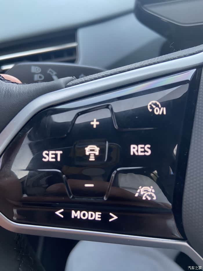 这个自适应巡航模式,其实就是我们车上比较常用的“定速巡航”的升级版,这个自适应巡航会比定速巡航稍微高级一点,具体体现在自适应巡航功能会根据前车的速度变化而作出相应的速度调整。举个例子,当我们打开自适应巡航功能之后,按方向盘的SET键,就会启动自适应巡航,最低可以设置20km/h的速度,如果我们的车速此时在80km/h,当我们松开电门以后,车辆还会继续以20km/h的速度进行巡航。当在80km/h的时候按一下SET键,此时巡航速度就设定在了80km/h,期间可以自由加速而不影响巡航设定,车辆在前方没有车的时候会以80km/h的速度进行巡航,如果前方有车,车辆会根据前车速度自行调节车速保持跟车状态,当前方车辆车速高于80km/h同时我们的车辆达到80km/h时,我们的车辆并不会继续加速,而是保持现有速度进行巡航,期间如果我们有人工刹车的情况出现的话,就会导致巡航功能自动关闭,想要恢复之前设定好的80km/h的巡航速度的话,可以按一下RES键,这样就会继续以80km/h的车速进行巡航。车辆在跟车导致速度变化或者是人工刹车/人工加速导致速度变化的时候,按SET键就会改变巡航速度,比如当车速在100km/h的时候按了一下SET键,那么巡航速度就会变为100km/h,这时候不管车速如何变化,再按SET按键的话,就会使车辆恢复100km/h的巡航速度。这台车是标配车道居中功能的,默认是打开状态的,当车速大于等于60km/h的时候车道居中功能就会自动介入,此时车辆就会自动保持在当前车道的中间行驶,如果变道不打转向灯的话就会出现车辆“夺方向”的情况,也就是车辆会自动修正方向保持在当前车道行驶,当然了,夺方向也只是个很小的力道,人工强行转向的话也是可以的,最好还是打转向灯进行变道,变道完成之后关闭转向灯此时车道居中功能自动介入。这个车道居中功能在没有打开巡航状态的情况下也是会自动介入的,嫌麻烦的话可以在车机系统里关闭这个车道居中功能,上高速的时候再打开就可以了。