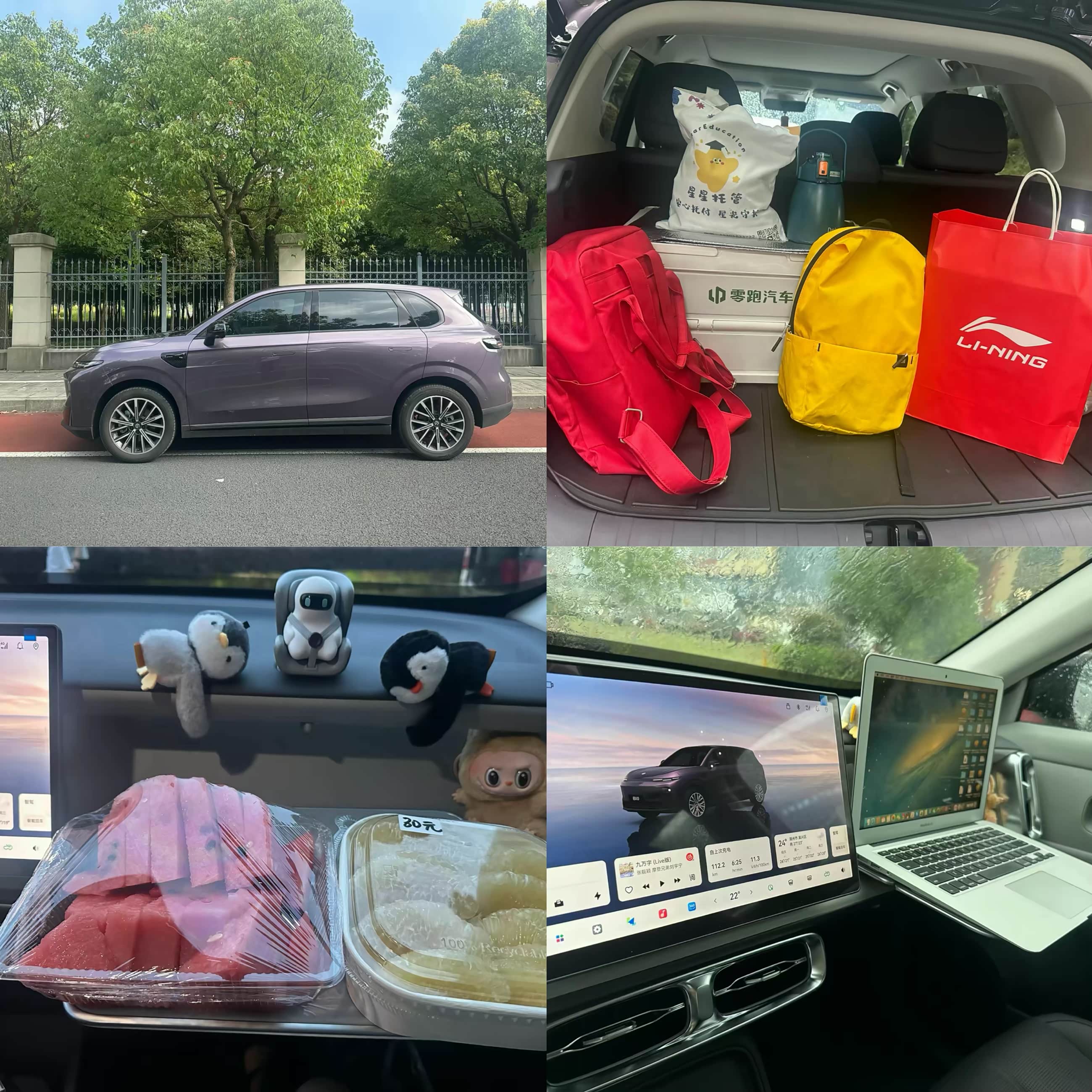11月底浅冬的周末开着零跑B10带着全家出去玩,总是充满期待。这款车里的每一件好物都是精心挑选的,让短途出行变得更温馨。小桌板是孩子的最爱,吃水果、看书都方便;小毛毯随时备着,孩子累了可以盖着休息;还有一套露营装备,随时准备户外活动,这些出行好物已经成了我们家的必备。零跑B10的车内空间真的很给力。老公身高有181,开车时一点也不觉得拥挤,腿部空间充足。孩子167的个头,坐在副驾驶还能伸直腿躺平,舒服自在。我这个 160的小个子,坐在后座膝盖离前排还有不少余裕,完全不压抑。后备箱更是能装,逛完超市大包小包全部塞进去,一点问题都没有。让我更惊喜的是零跑B10带来的情绪价值。我现在中午在车里休息时用车机大屏幕追剧效果很棒,它的画质清晰音效非常出色让人沉浸其中。有时候孩子还会用大屏幕涂涂画画消磨时光。有这样一款电车出行途中待在车里一点也不会无聊反而成了放松的小天地。零跑B10不仅仅是一辆车,更像是我们家的移动小窝,让每次出行都充满乐趣。