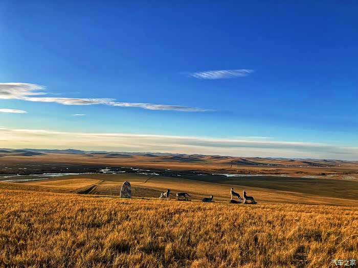 在西乌旗西南方向,距离不算很远,但从蒙古汗城的路口开始拐向乡路需要开1个小时,因为这条路比较破大坑比较多,而且还有很多超宽的运草垛的拖拉机。这个时节已经不售票了,售票的对面是蒙古包民宿,后面有条路可以通向山包,山顶能够俯瞰草原上的河湾,这里的河湾比九曲湾有过之而无不及,山脚下有条土路可以通向草原深处,并会穿越河道,草原上有不少牛马群,这里是欣赏日落的绝佳地点。游牧部落其实只是初始的区域,这个地区实际为古日格斯台国家级自然保护区,顺着路往前开可以到达半拉山和白桦林,但半路我们从土路深入草原,是往深处乡村的道路,在原始的草原上奔放。这个区域充满了原生态的风景,可以花上一整天时间。