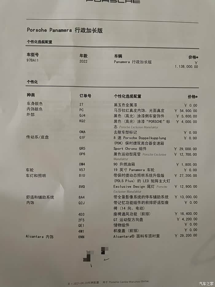 首先上配置单,因为4S店的要求是最低要选配20,一开始定的时候是选了2.72的矩阵大灯,没有选BOSE音响。后来下配额的时候销售和我说如果选矩阵大灯预计会延期3-4个月,所以就取消了大灯改成BOSE音响了。