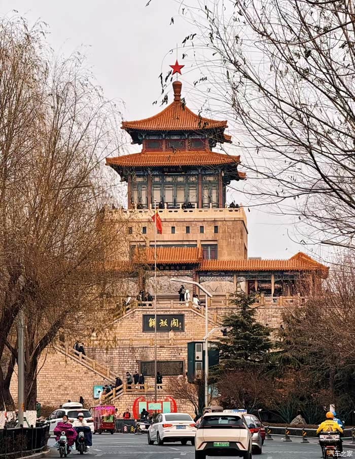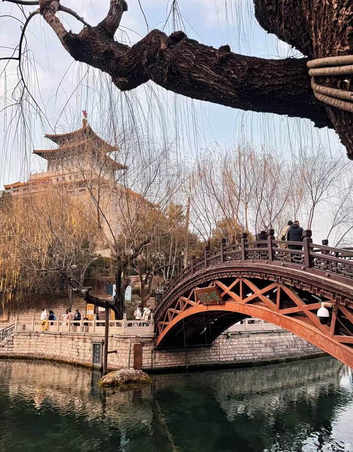 行至历下亭附近,我停车步行。老舍先生笔下的“泉城明珠”,在冬季褪去了所有浮华。亭台楼阁的红柱青瓦在灰蒙蒙的背景中显得尤为鲜明庄重。湖边偶有几位不畏寒的老人,安静地垂钓或打着太极,动作缓慢而专注,与湖的节奏融为一体。