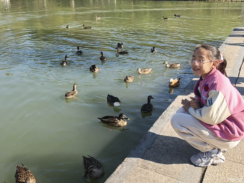 喂鸭子,玩的不亦乐乎