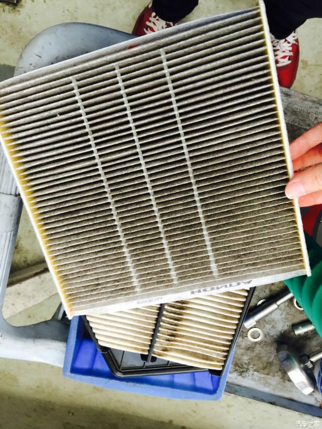 可能是经常走一些尘多的路段吧,感觉空调过滤网非常脏,我问师傅这个4S首保不换的吗?他说这个成本比较高,只给清洁不给免费更换,所谓的清洁就是拿着高压风枪喷几下,幸好我是全程看着的,师傅帮我喷得比较认真,想想就算了,听师傅说这网新的要百来块钱,我心想,还是在外面或者网上买算了,反正安装我自己也会。