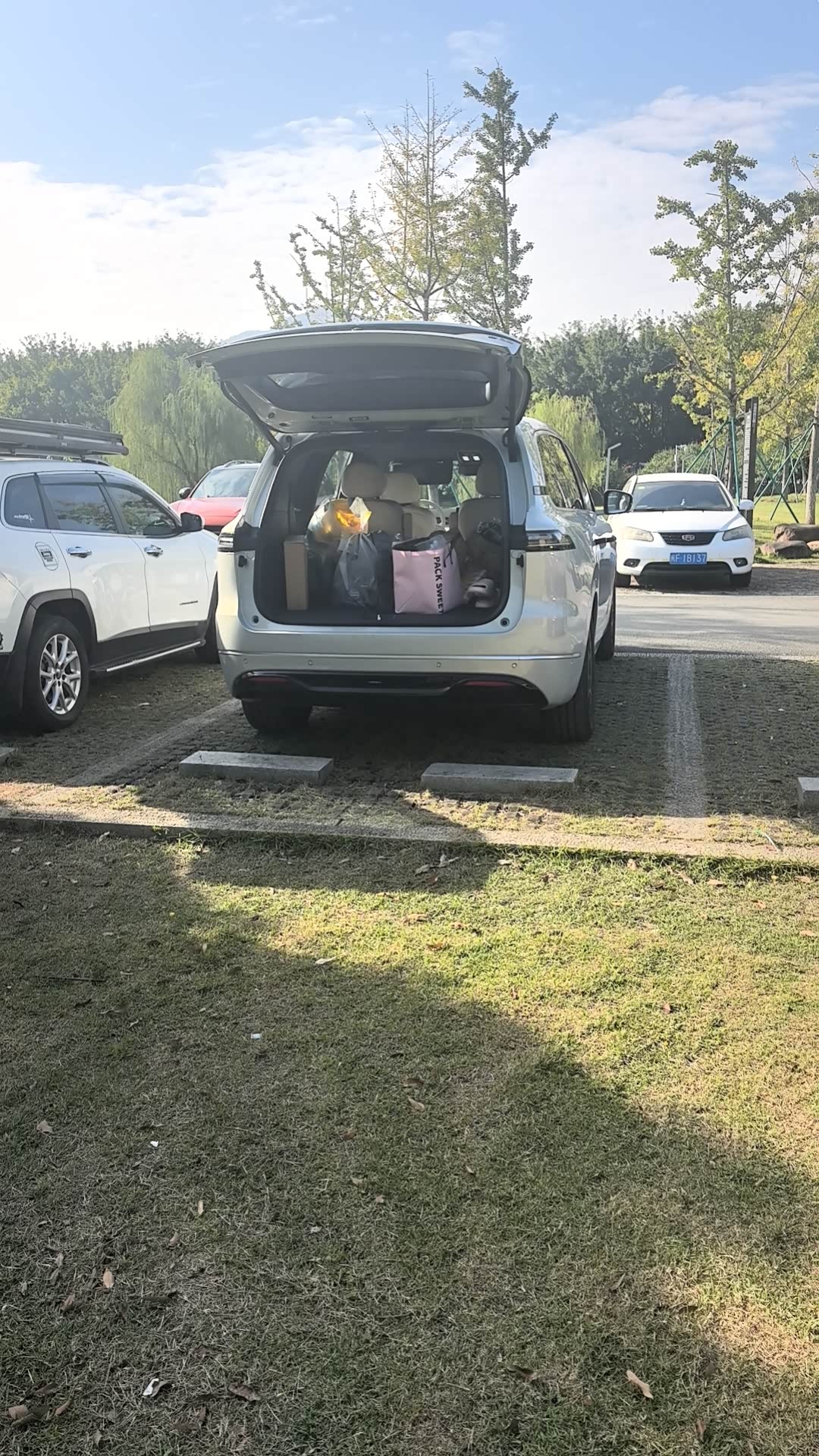 到了公园停车场,用智能一键泊车停进了一个“左右都有车”的车位,全程不用我碰方向盘。毕竟对女司机真的很友好(我可没说我停不进去)