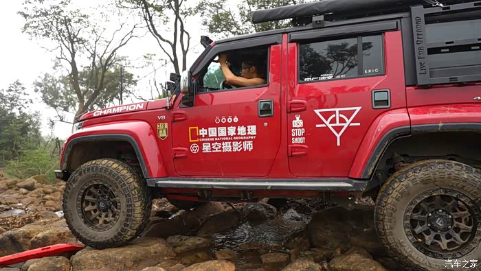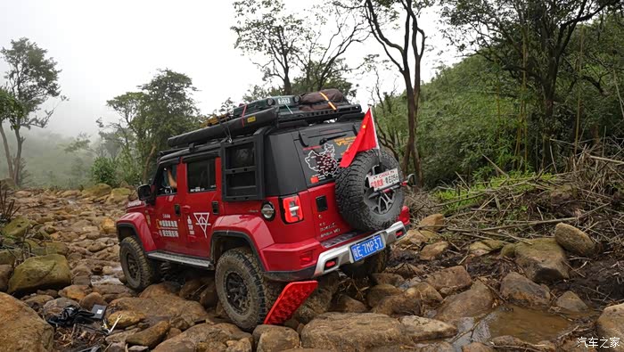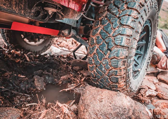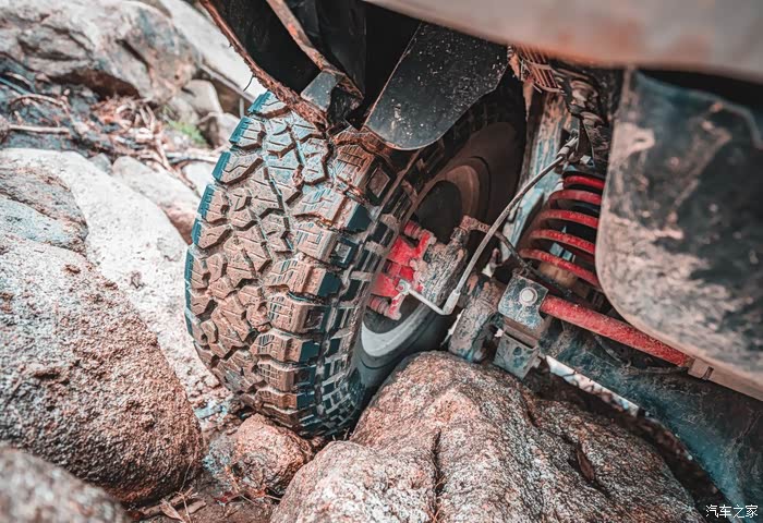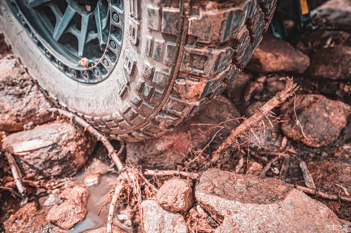因为是乱石阵,四个轮子附着力都不如在泥地,每一个轮子都有些许离地