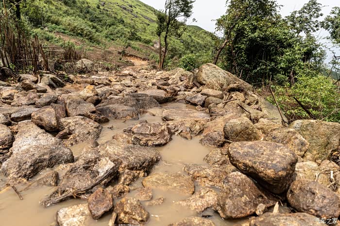 车子上来后,我就压着刚刚的大石头下去了泥路