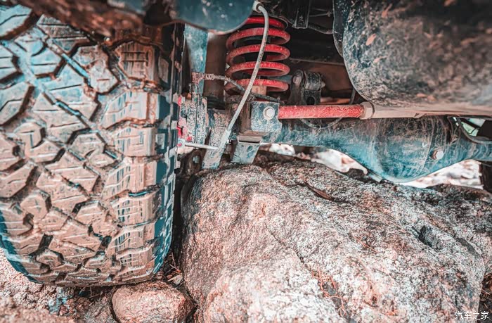 这次我们下山时,由于我大意了,没有闪,后桥的减震支架直接卡在了大石头的缝隙之中,直接顶住了车子,无法前进后退。
