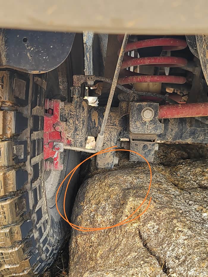 顺便说一下左前轮其实也没有附着力,只有一个小石头顶住,根本使不上力,图片里看不出来,其实已经接近空转的状态