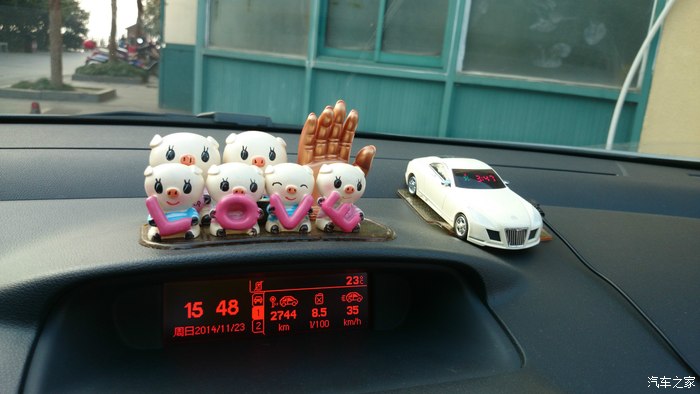 中控台全景,中控台小屏幕上面love小猪的全家福,我属猪,买车后老公买来送我的,后面的是在灵山大佛景区请的大佛的佛手,可以保佑小八和我们全家平平安安!