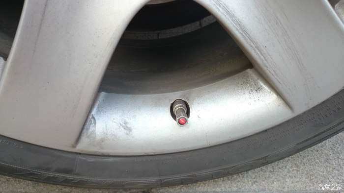 轮毂上胎压监测气门嘴的特写,ORO质量蛮稳定的!