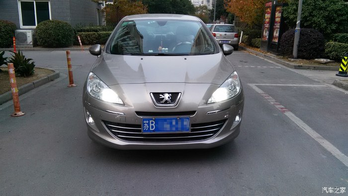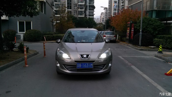 正脸,可以看到前脸有驻车雷达,我的是2.0自动舒适版,买车后,老公尽管车开得少,但也天天看看咱们的论坛,汽车之家就是他每天必逛的网站,看到很多车友的改装贴,也参考在我的小八上面做了一些有助于驾车安全的改装。改装的是C5的前置6雷达,比408的尊贵版还高级!偷偷乐一下!^-^