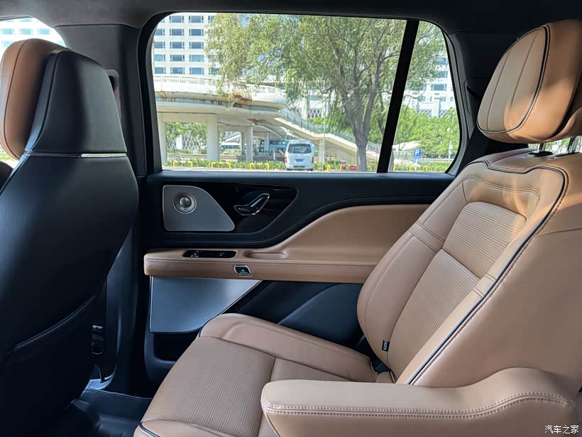 首先是座椅配色,个人认为金星橙是三个座椅配色中最耐看,也是最能彰显豪华的,当之无愧作为总统版的专属座椅配色。其次飞行家的操作提示音是扎根于汽车城底特律的交响乐团专门为林肯量身打造的,从提醒到初级预警到高危预警,三种不同提示级别的音效被应用于车内25项功能之中,将音乐、汽车与科技完美地融合在一起。我接触到的其他车型还没有过这样做的。第三是有电吸门的加持,豪华感立马上升。第四是黑色的Alcantara车顶与橙色座椅是绝配,结合车内的大空间,让人既不感觉空旷也不感觉压抑。飞行家的中低配车型上是类似于织布面料的车顶,在高配上才是Alcantara材料的,但林肯没有把这种差距体现在车辆配置信息表里,可能是林肯过于低调,觉得Alcantara这种兼具柔软性、典雅风格、饱满色泽以及出色的耐用性和耐磨性的非皮质材料不值一提吧。第五是“躬应上宾”式迎宾感应系统,注意是“躬应”而不是“恭迎”,乘客上车前车身会自动下降35mm,充分体现“躬应”,方便更舒服的坐进车内。另外,在开门之前带有林肯标志的灯光会打在前后车门之间,也表示对前后排乘客的欢迎。最后是第二排和第三排的电动座椅调节,特别是第三排需要进人时,可以按第二排座椅顶部的按钮,座椅电动向前移动,仪式感呈现得满满的。