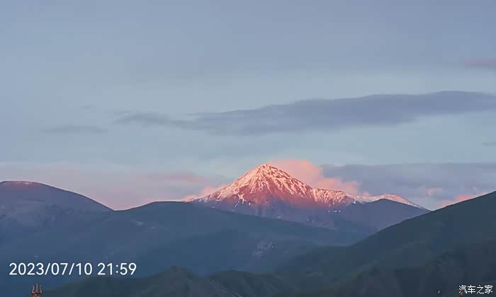 泊车赛里木湖边,静静观赏晚霞色彩的多姿变幻。晚上气温降到6度,开柴暖了,车里还是暖和的。